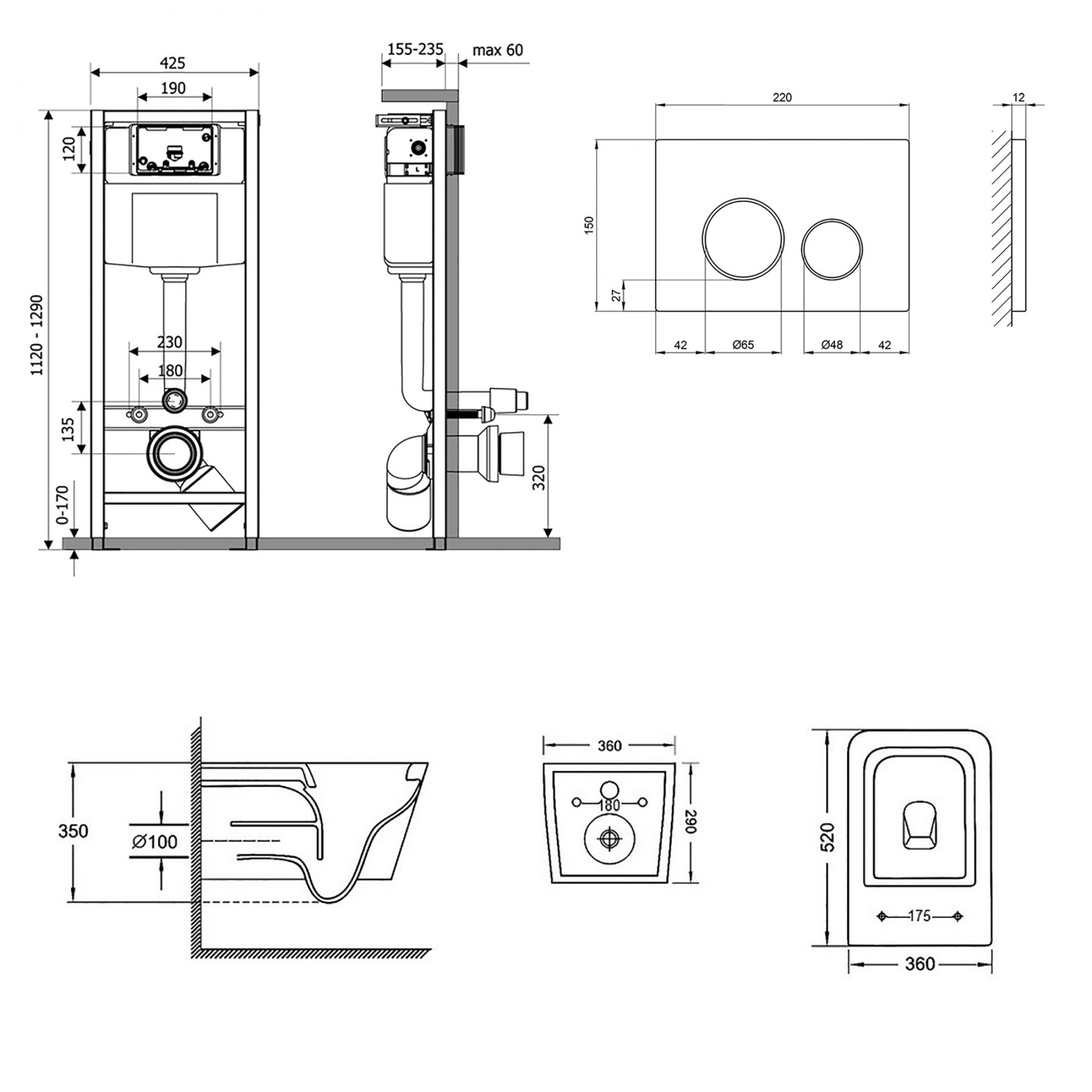 Тип изделия:Набор инсталляций + унитаз с сиденьем