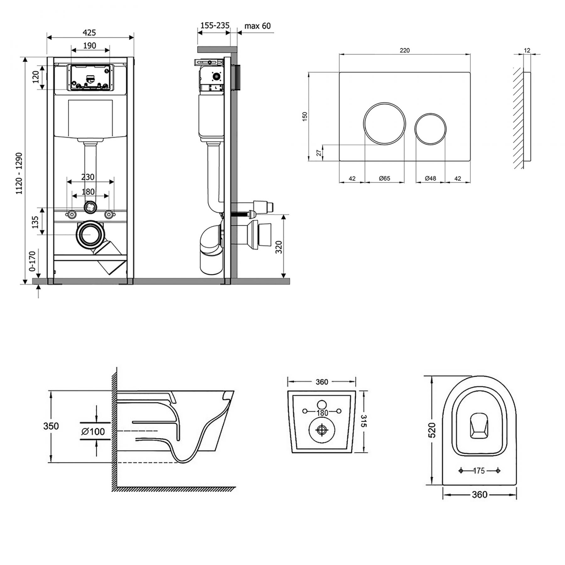 Тип изделия:Набор инсталляций + унитаз с сиденьем