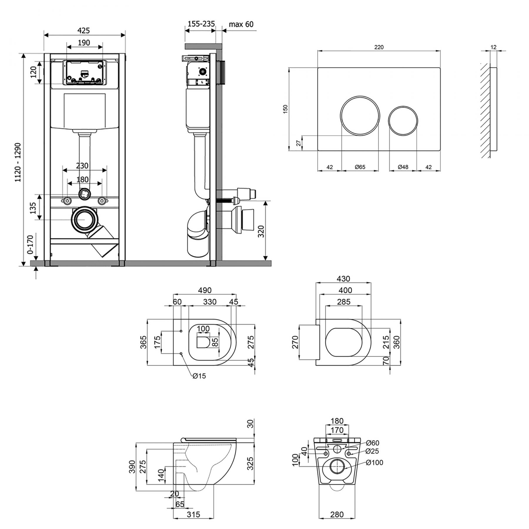 Тип изделия:Набор инсталляций + унитаз с сиденьем