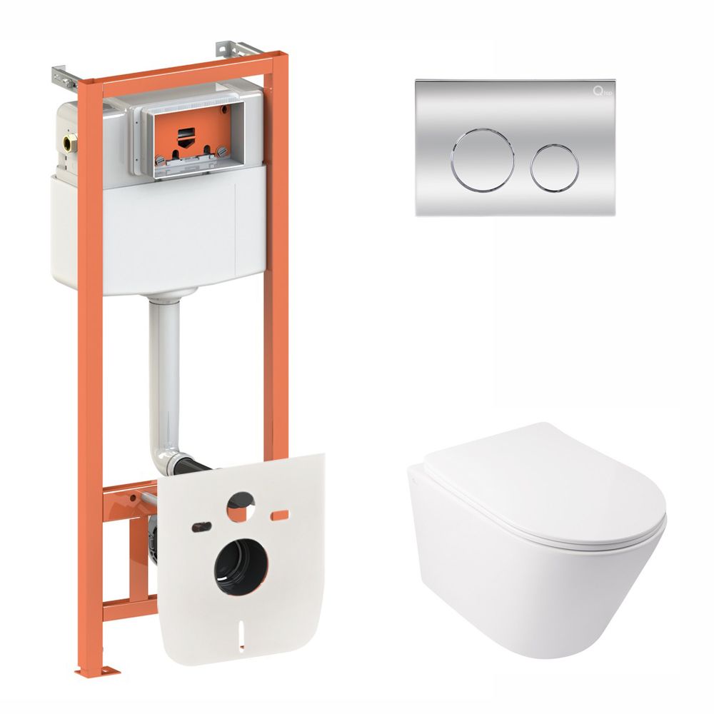 Непревзойденное качество, покупай набор Qtap инсталляция 3 в 1 Nest QT0133M425 с панелью смыва круглой QT0111M11112CRM + унитаз с сиденьем Swan QT16335178W