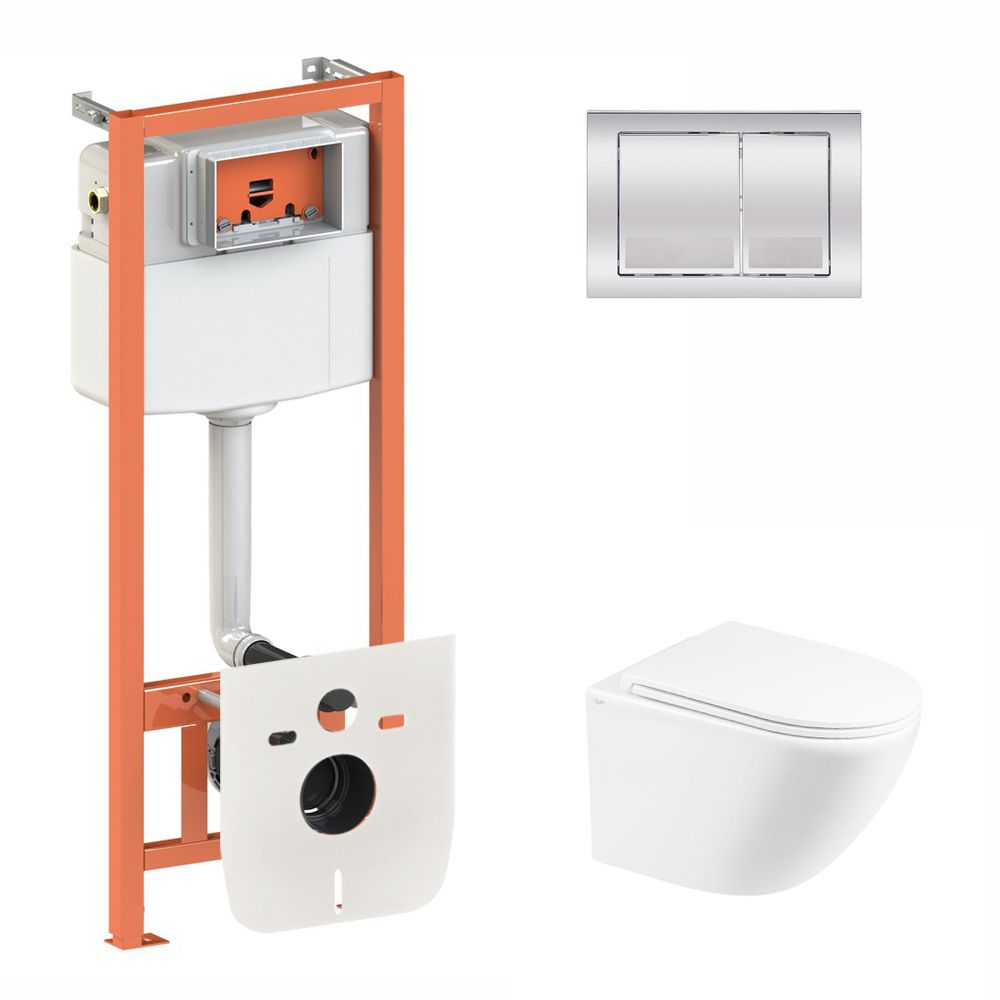 Непревзойденное качество, покупай набор Qtap инсталляция 3 в 1 Nest QT0133M425 с панелью квадратного смыва QT0111M06028CRM + унитаз с сиденьем Robin QT1333046ENRW