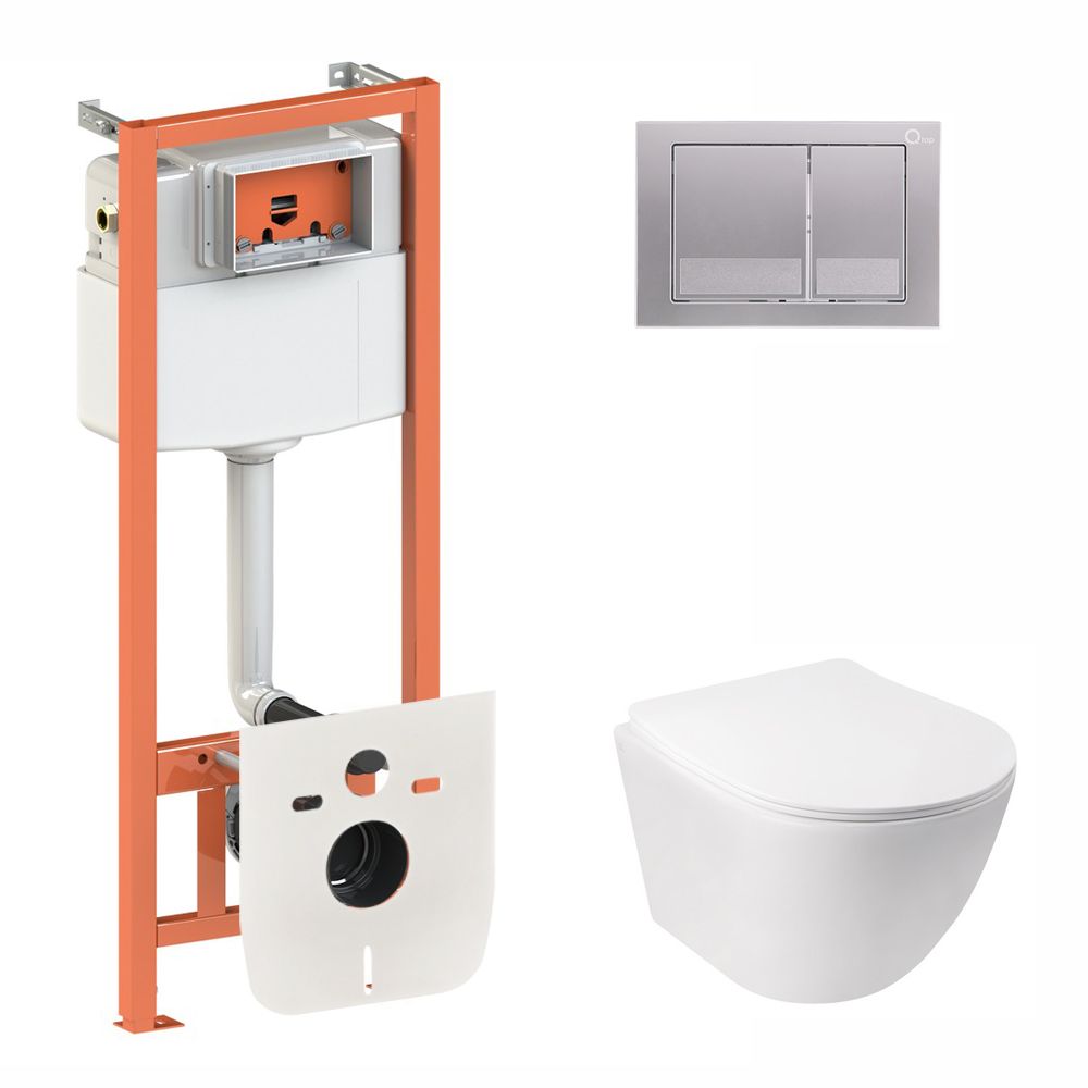 Набор Qtap инсталляция 3 в 1 Nest QT0133M425 с панелью квадратного смыва QT0111M06029SAT + унитаз с сиденьем Jay QT07335176W