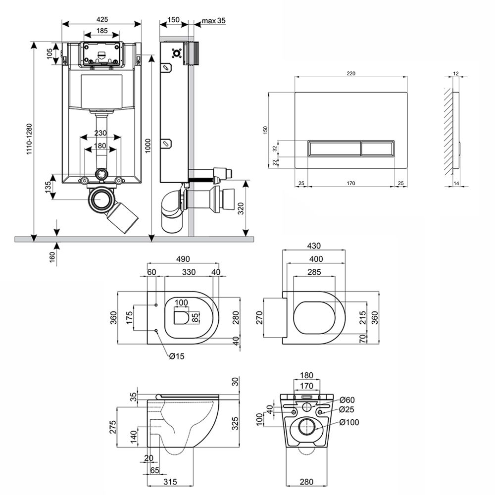 Тип изделия:Набор инсталляций + унитаз с сиденьем
