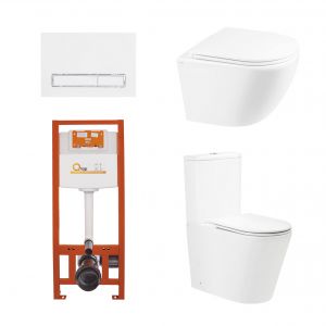 Состав набора:Унитаз с сиденьем Scorpio: QT14222125AUQW. Унитаз с сиденьем Robin QT1333046ENRW. Установка: QT0133M425. Панель смыва: QT0111M08V1384W.
