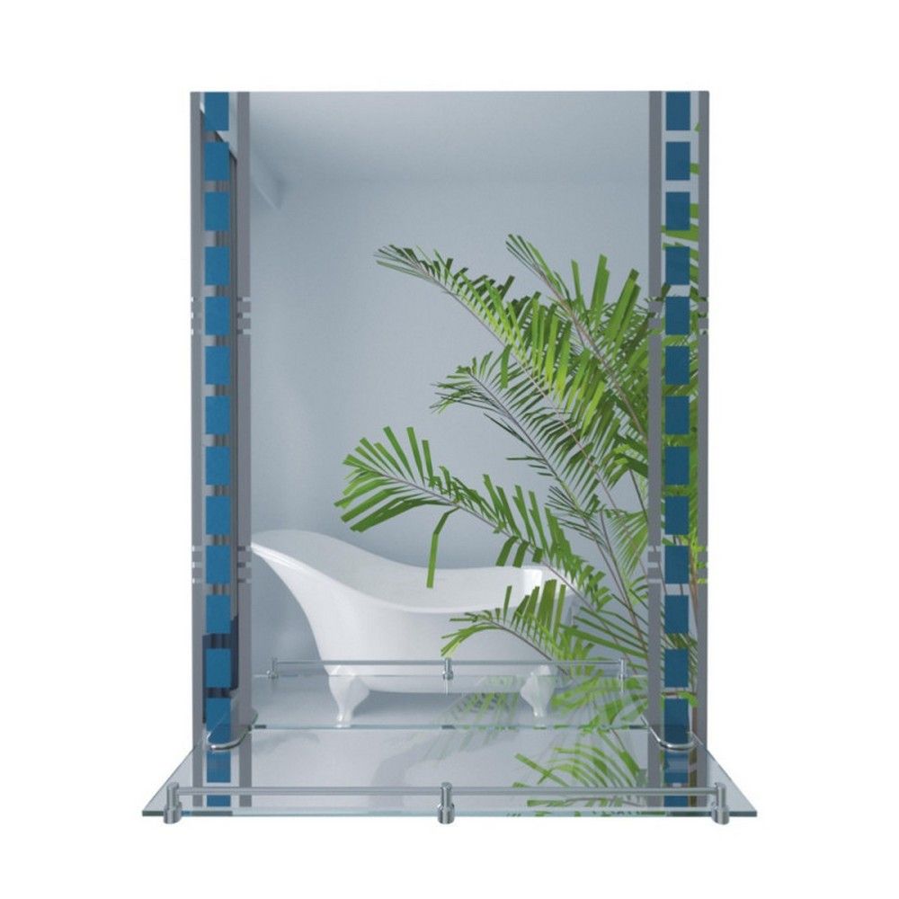 Дзеркало Lidz Michelle із полицею 600х850х105 мм LD78MI6085 кріпиться на стіну за допомогою шурупів, що входять до комплекту. Воно комплектується разом із полицею з прозорого скла з хромованим бортиком, що запобігає випадковому падінню гігієнічних засобів. Полиця кріпиться до дзеркала за допомогою металевих утримувачів. Хромована поверхня захищає від вологи та зберігає блиск надовго. По краях дзеркало декороване сірими та синіми смужками.