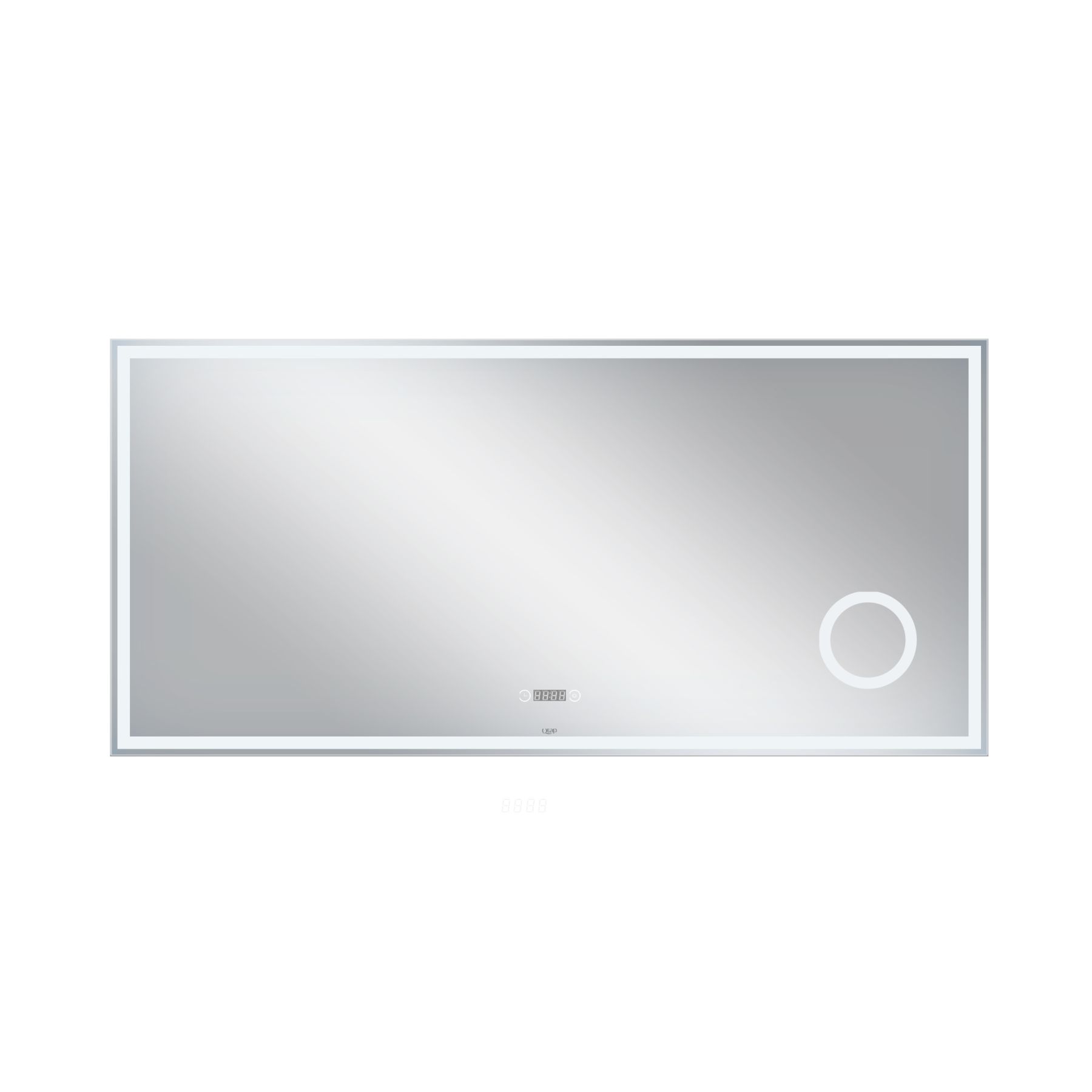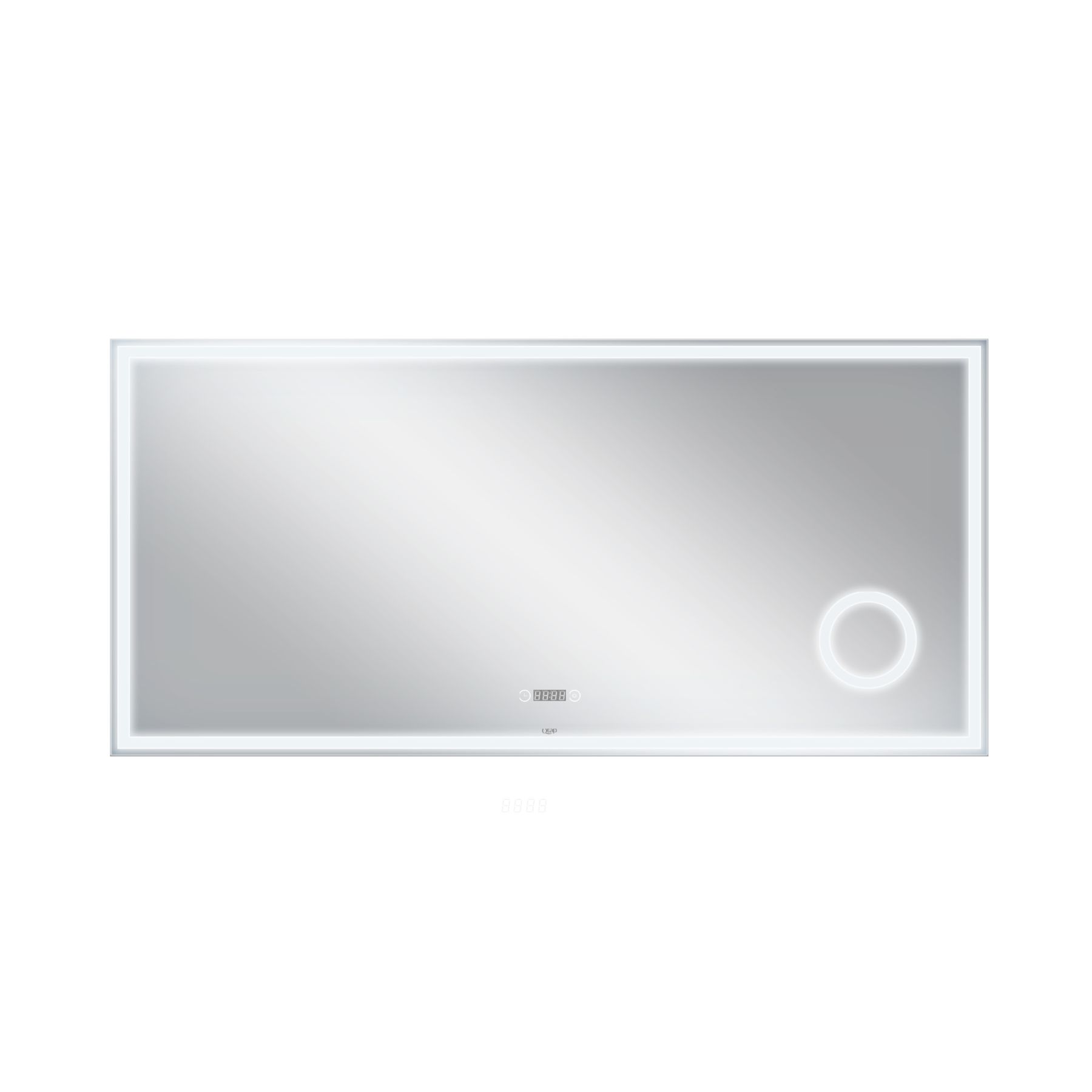 Зеркало Qtap Stork 1400х700 с LED-подсветкой Touch, линза, цифровые часы, димер, рег. яркости QT1578142270140W