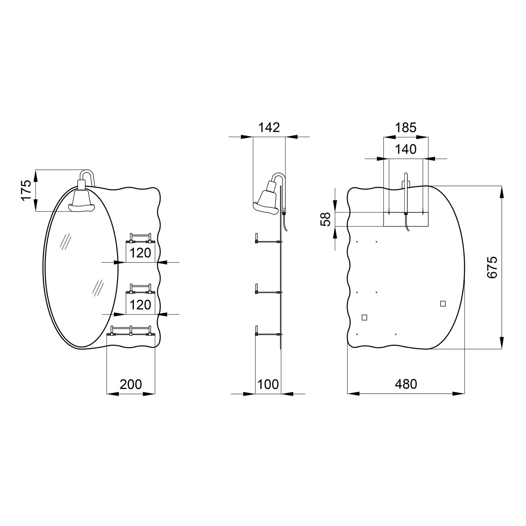 Расположение подсветки:Наружная над зеркалом