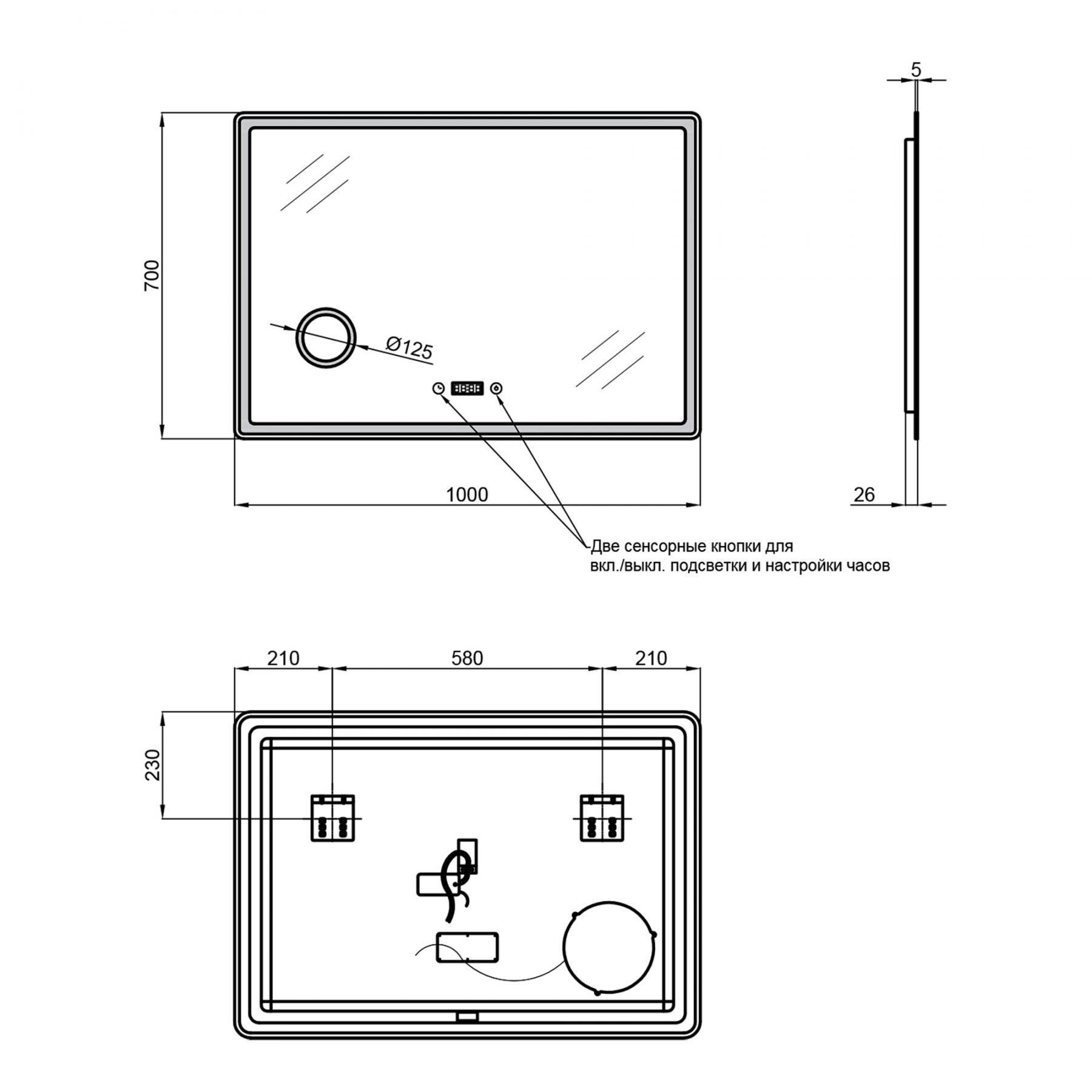 Зеркало Qtap Crow 1000х700 с LED-подсветкой QT0578141670100W