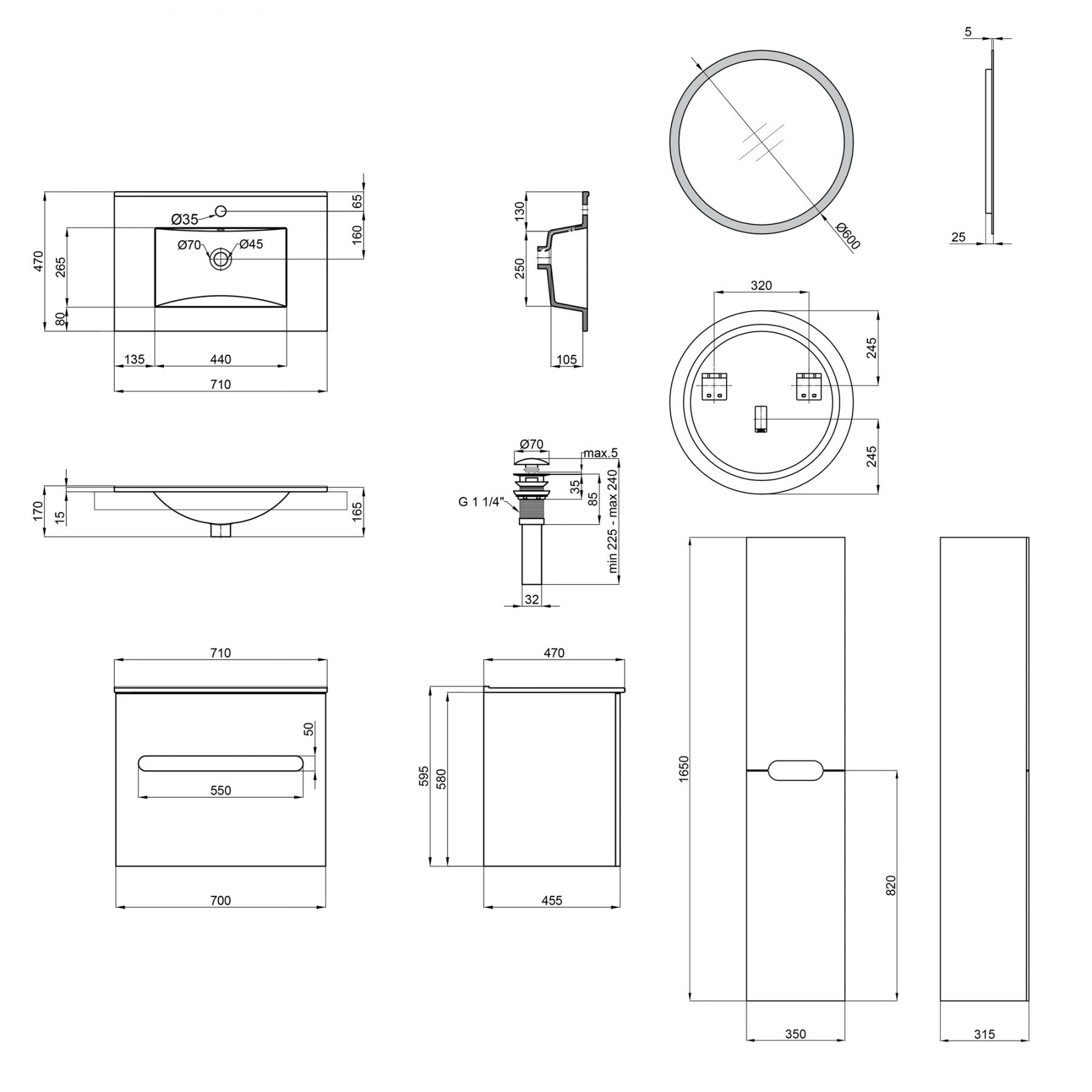 - Комплект мебели обладает стильным и современным дизайном, который подойдет к любому интерьеру ванной комнаты.