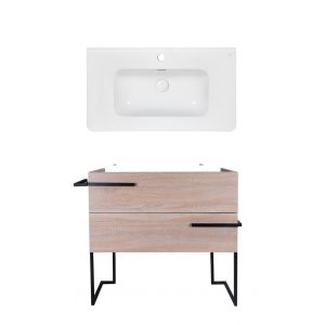 Комплект Qtap напольная тумба Taurus 800х800х437 мм Whitish oak + раковина врезная Albatross 9H QT71TA44015