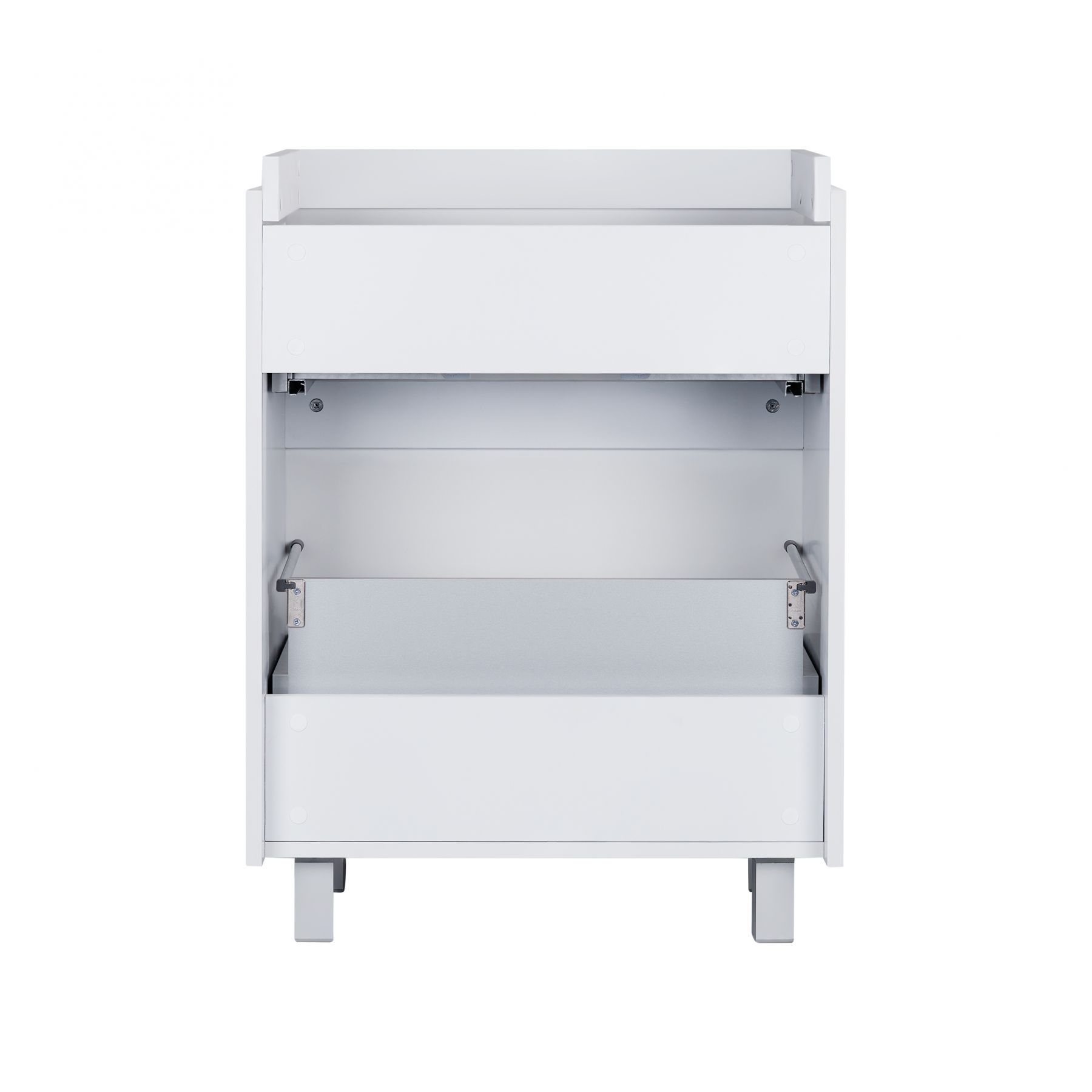 Половая тумба Qtap Albatross QT0173TN600DW выполнена с отверстием под сифон. В комплекте четыре хромированные ножки из пластика с металлическим каркасом. Корпус тумбы изготовлен из ДСП, с двухслойной ламинацией белого цвета, фасадная часть из МДФ с глянцевым покрытием. Тумба снабжена двумя выдвижными ящиками с механизмом доводчика. Изделие выполнено в элегантном лаконичном стиле, который дополнит раковину и впишется в дизайн любой ванной комнаты.