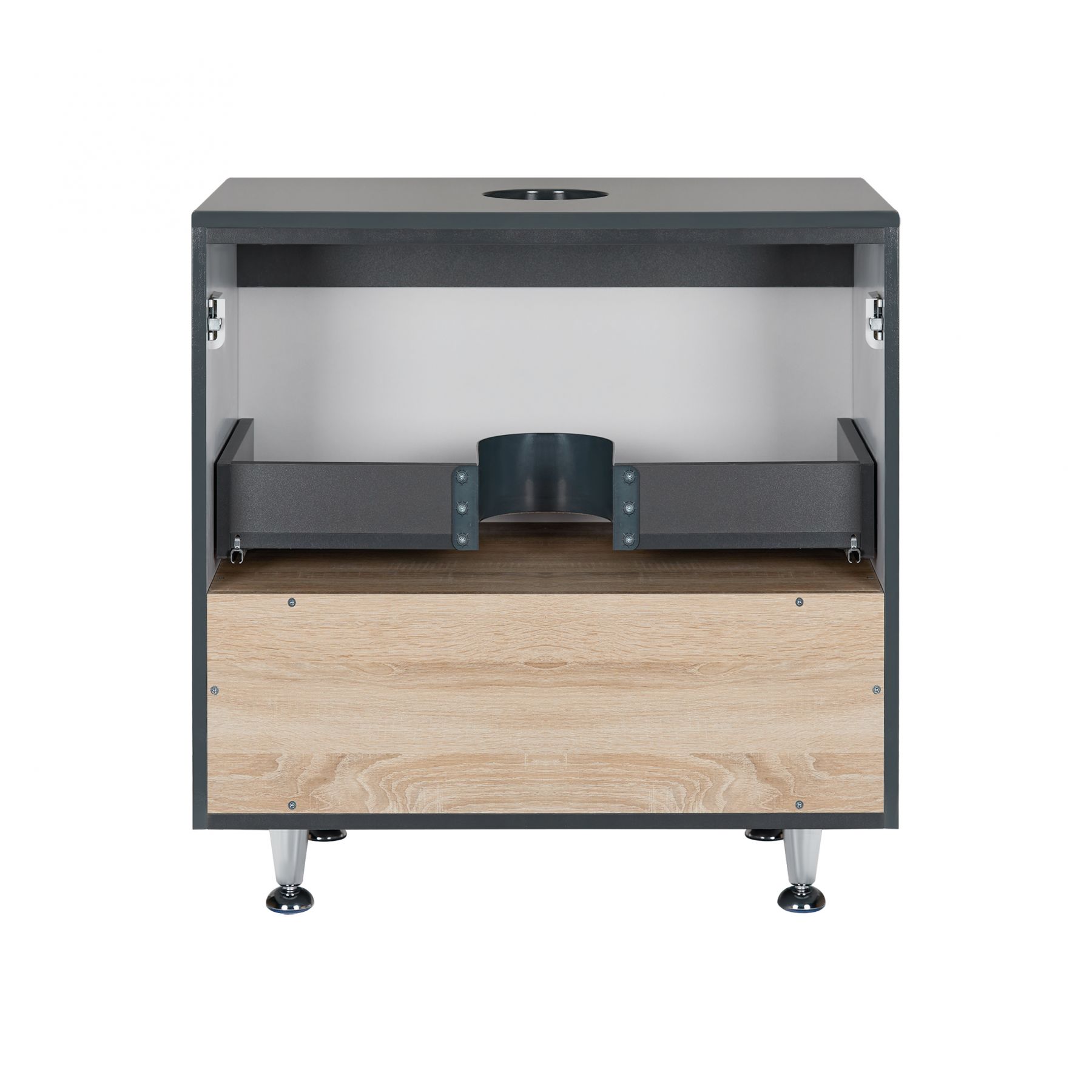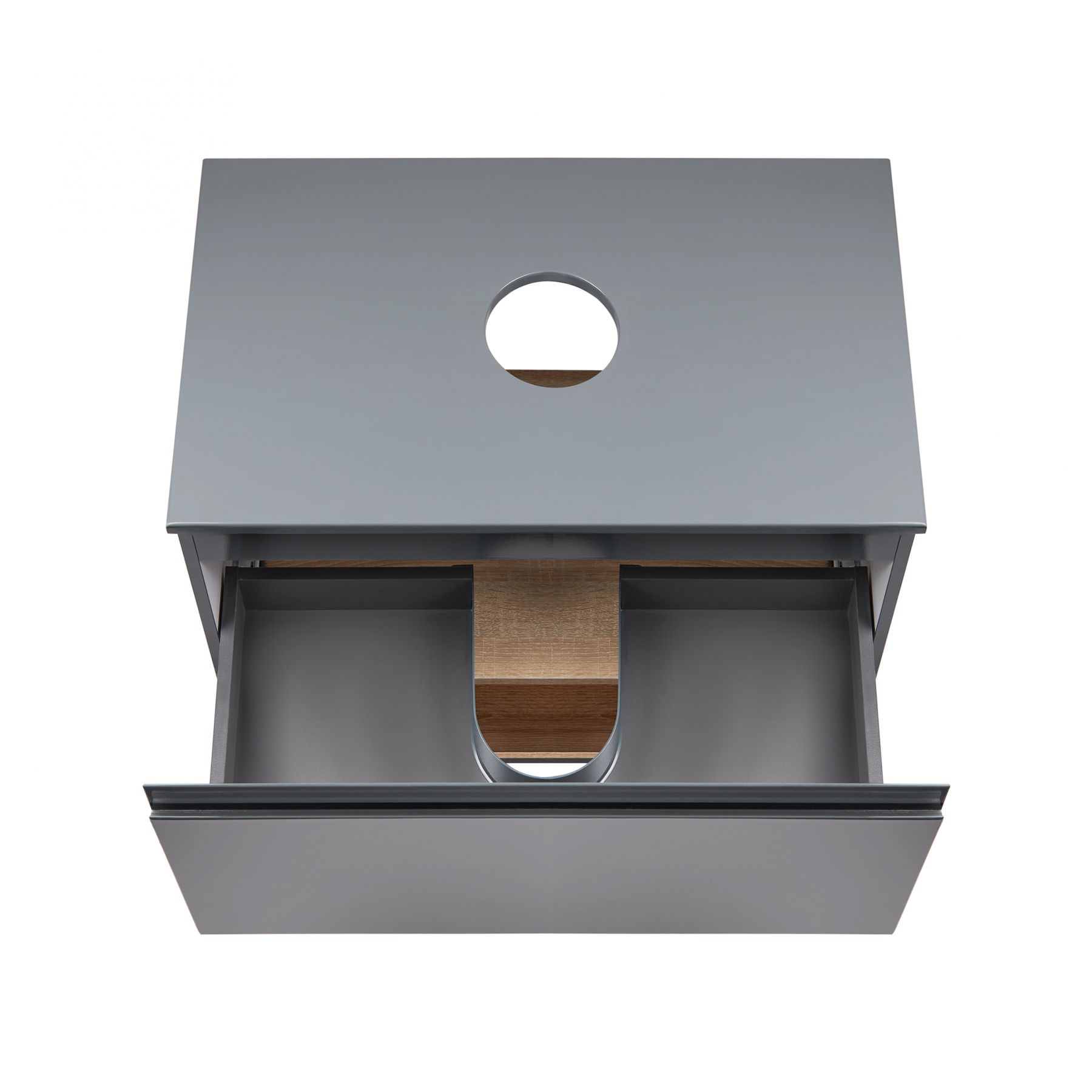 Напольная тумба Qtap Robin QT1380TNH6002GWO выполнена с отверстием для установки накладной раковины, а также отверстием под сифон. Корпус тумбы серого цвета изготовлен из ЛДСП, фасадная часть – из МДФ с глянцевым покрытием. Изделие оснащено удобным и вместительным выдвижным ящиком с механизмом доводки, а также стильной полкой цвета белого дуба. Тумба выполнена в элегантном лаконичном стиле и подходит к дизайну любой современной ванной комнаты.