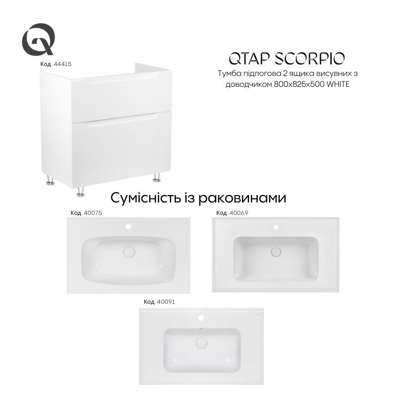Тумба напольная Qtap Scorpio 800х825х500 WHITE QT1473TNВ801NW