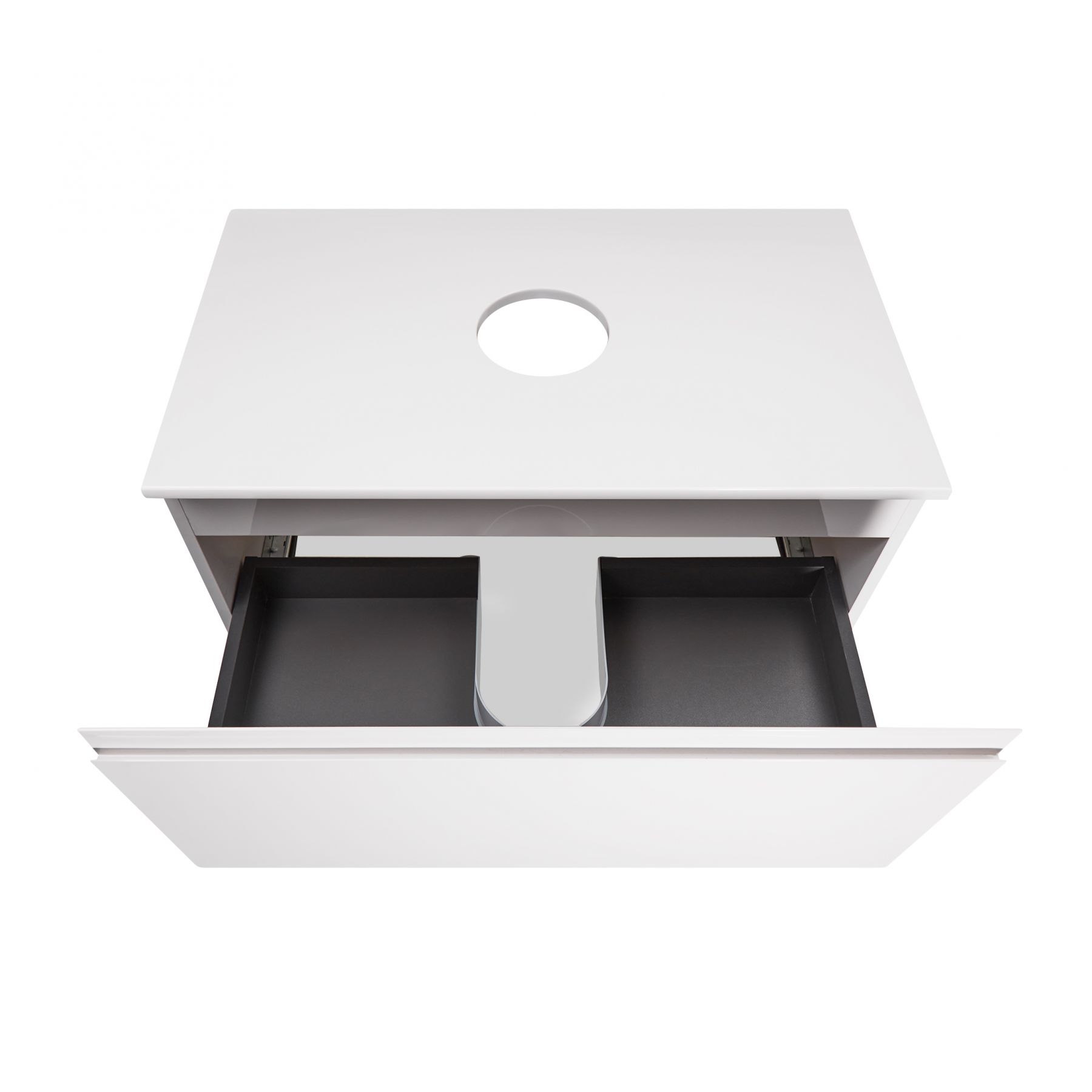 Подвесная тумба Qtap Robin QT1379TPH8001W выполнена с отверстием для установки накладной раковины, а также отверстием под сифон. Изделие оснащено удобным и вместительным выдвижным ящиком с механизмом доводчика, стильной полкой и белого цвета. Тумба сделана в элегантном лаконичном стиле. Благодаря подвесной конструкции уборка не доставит лишних хлопот.