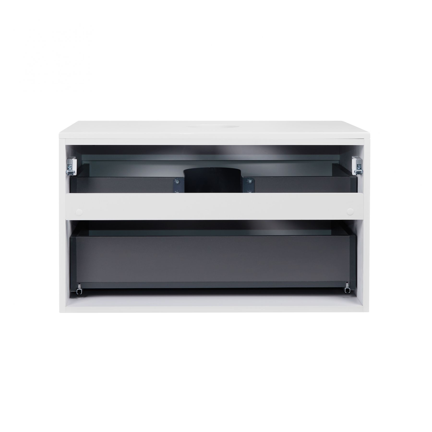 Подвесная тумба Qtap Tern 800х476х469 White со столешницей QT1779TPL801W выполнена с отверстием для установки современной накладной раковины-чаши, а также отверстием под сифон. Корпус тумбы белого цвета изготовлен из ЛДСП, фасадная часть – из МДФ. Изделие оснащено удобными и вместительными выдвижными ящиками. Благодаря механизму push-to-open ящики открываются одним лёгким нажатием на фасадную часть. Подвесная конструкция тумбы облегчит уборку помещения.