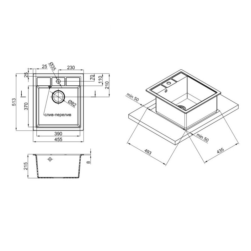 Кухонная мойка Lidz 460х515/200 GRA-09 (LIDZGRA09460515200)