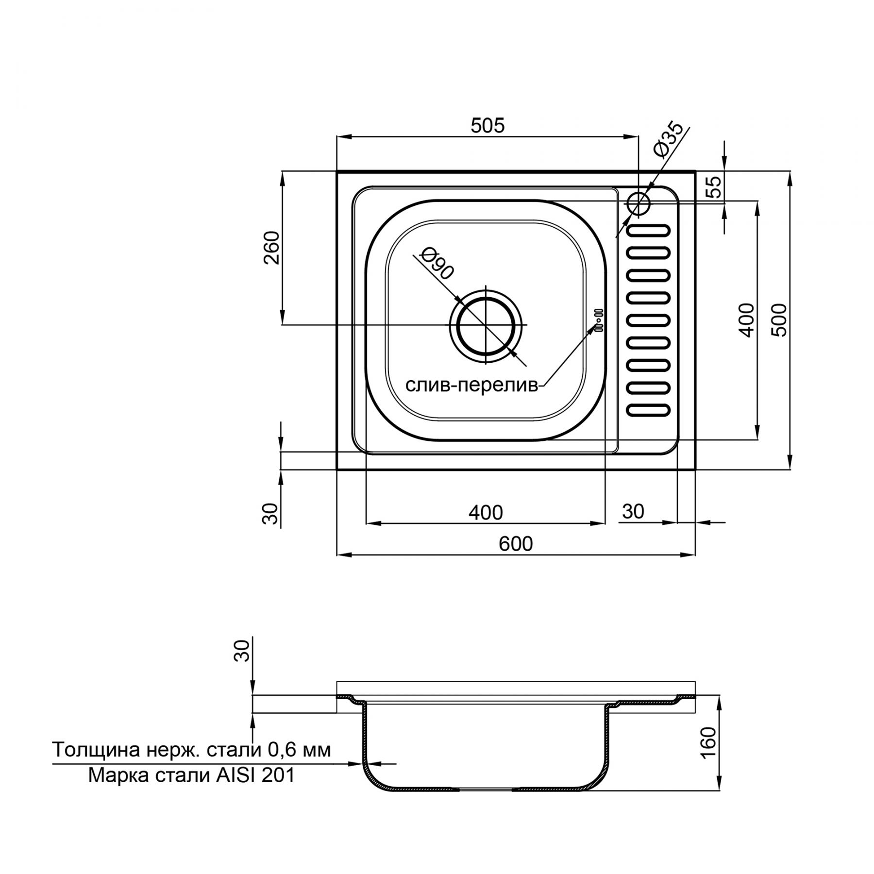 Кухонная мойка Lidz 6050-L 0,6мм Satin изготовлена из высококачественной нержавеющей стали пищевой марки, поэтому изделие прослужит долгие годы. Также стоит отметить неподражаемый дизайн, который украсит любую кухню. Отличное качество и дизайн мойки удовлетворят самые взыскательные пожелания и создадут уют в вашем доме! Мойка выполнена с рабочей чашей, ребристым крылом для сушки посуды и размораживанием продуктов, отверстием для смесителя. Монтируется накладным способом.
