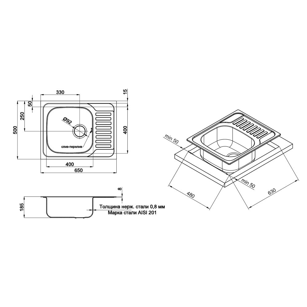 Кухонная мойка Qtap 6550 0,8 мм Micro Decor (QT6550MICDEC08)