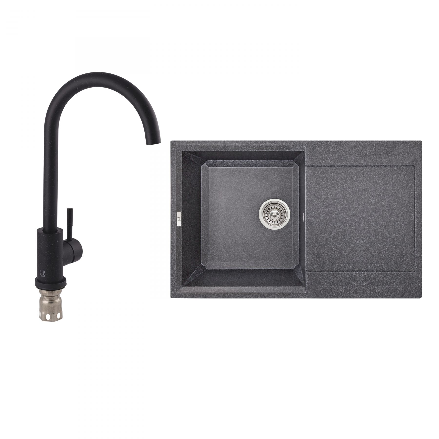 Набор: Кухонная мойка Lidz 790x495/230 BLA-03 (LIDZBLA03790495230) + Lidz Aria Смеситель для кухни 015F BLA