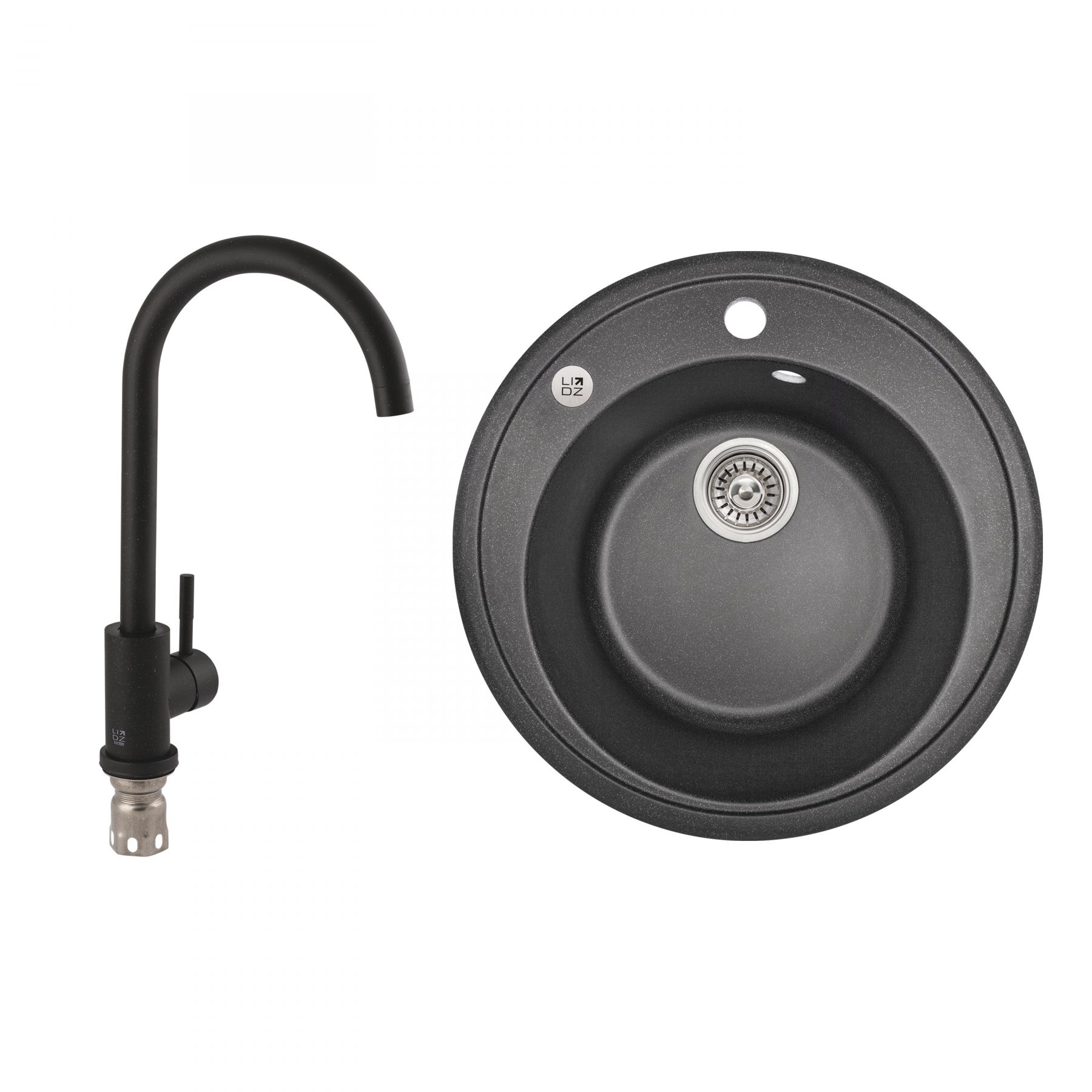 Набор: Кухонная мойка Lidz D510/200 BLA-03 (LIDZBLA03D510200) + Lidz Aria Смеситель для кухни 015F BLA