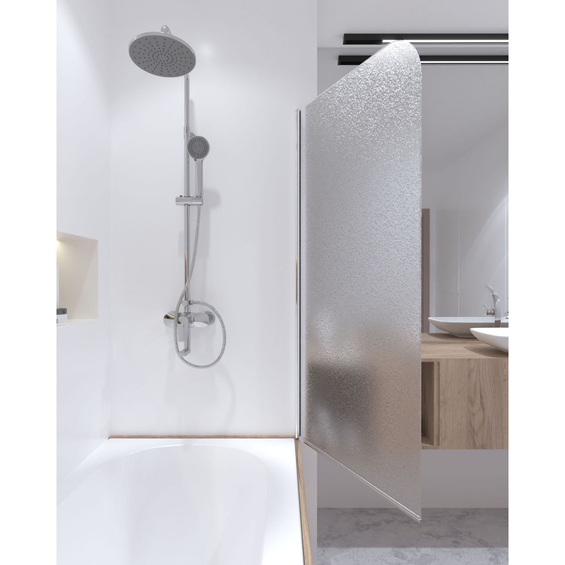 Комплектация:Стекло, пристенный профиль, набор винтов, регулирующий профиль, заглушка.
