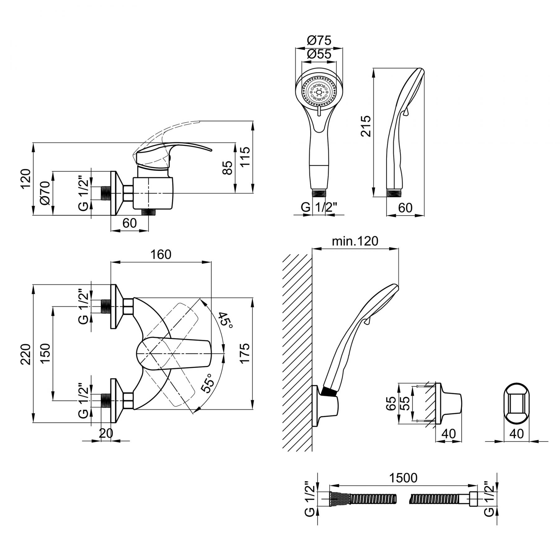 Комплектация:Смеситель. душевой шланг. лейка для ручного душа. держатель для ручного душа. крепежные детали.