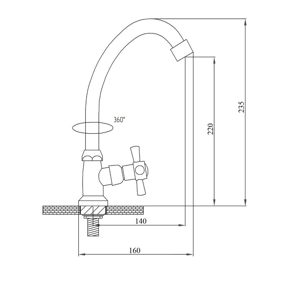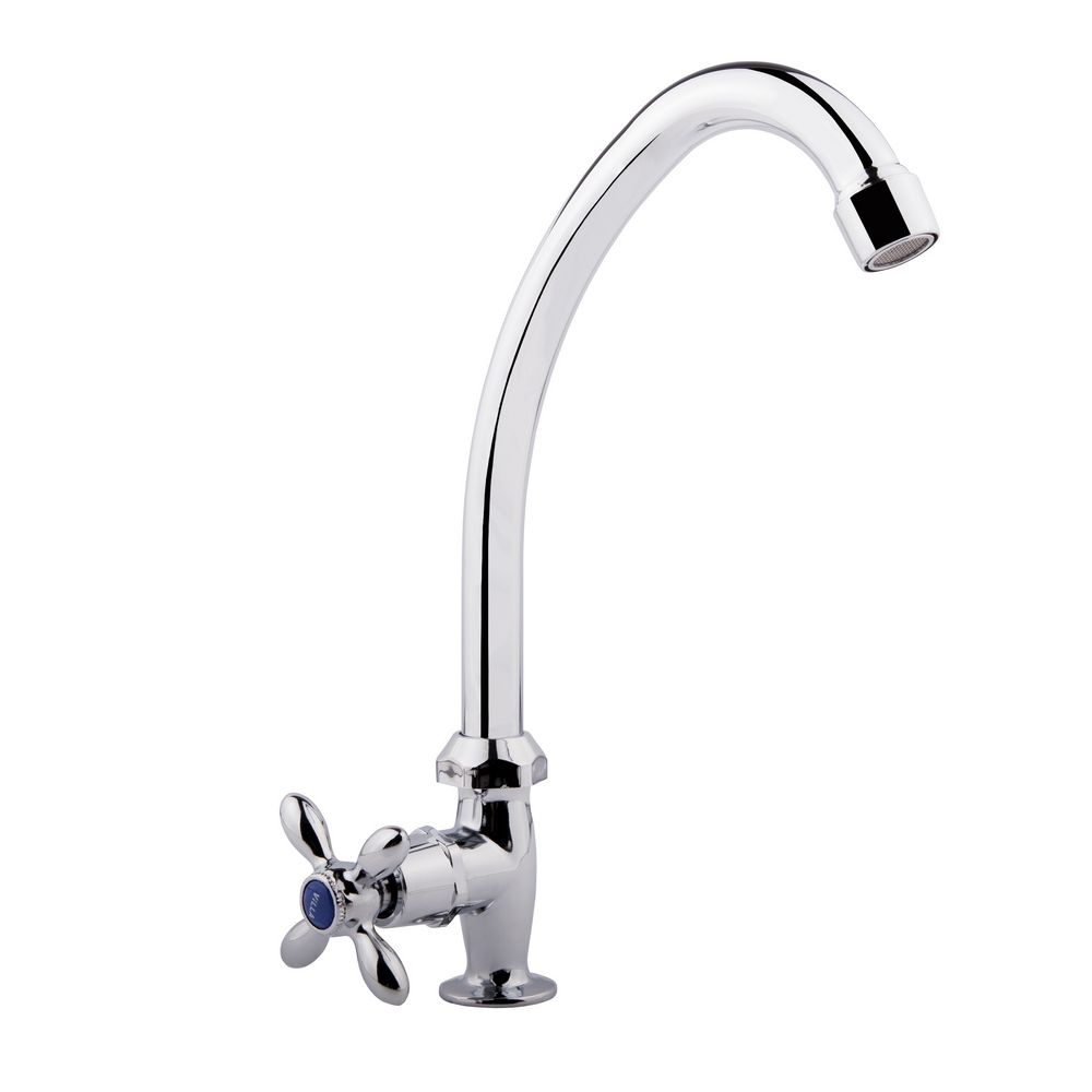 Кран на воду для кухни SW Villa 716-06 изготовлен из силумина. Благодаря глянцевой хромированной поверхности имеет оригинальный внешний вид. Выполнен в классическом стиле, с вентильной ручкой для регулировки давления холодной воды.
