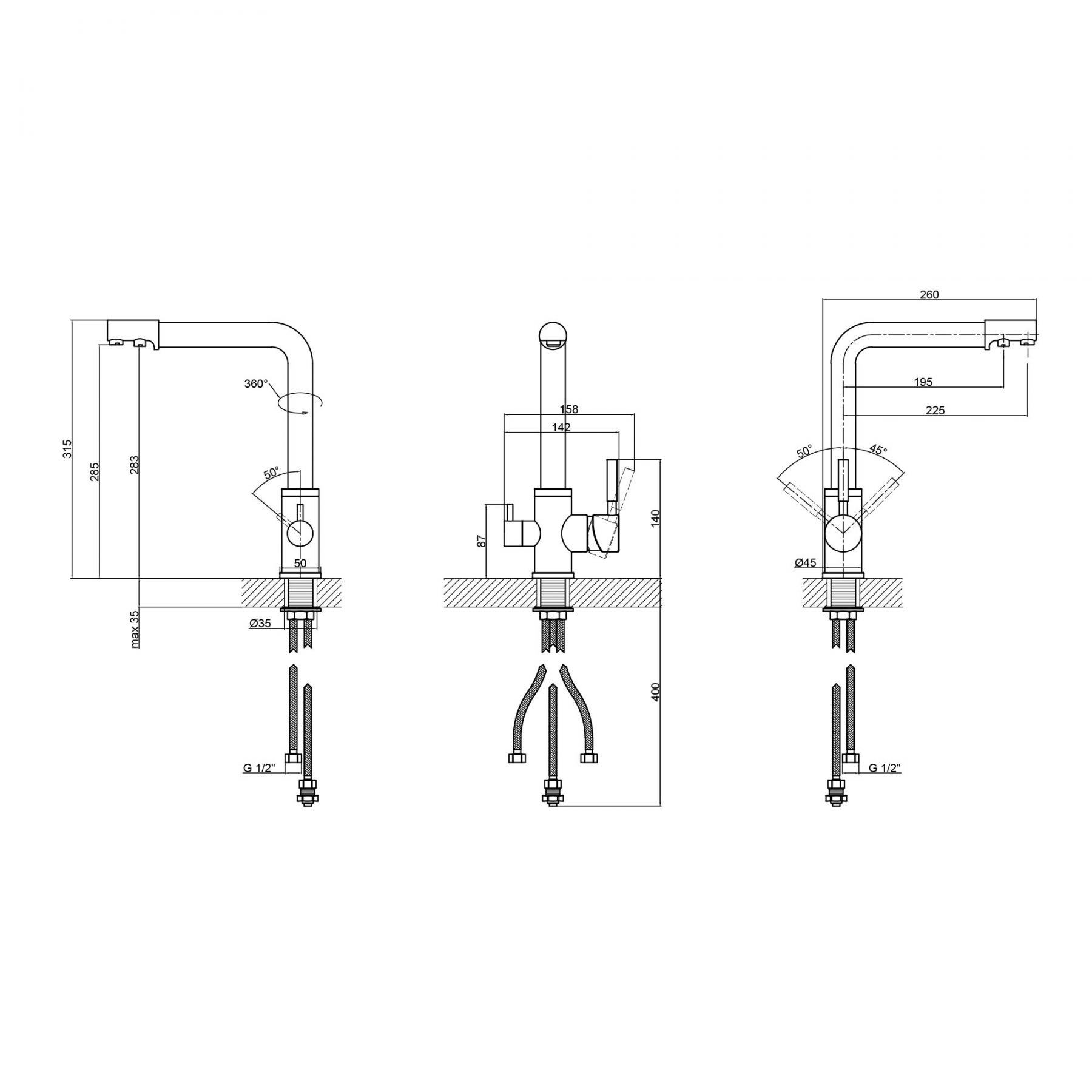 Комплектация:Смеситель. гибкий подвод. крепежные детали.