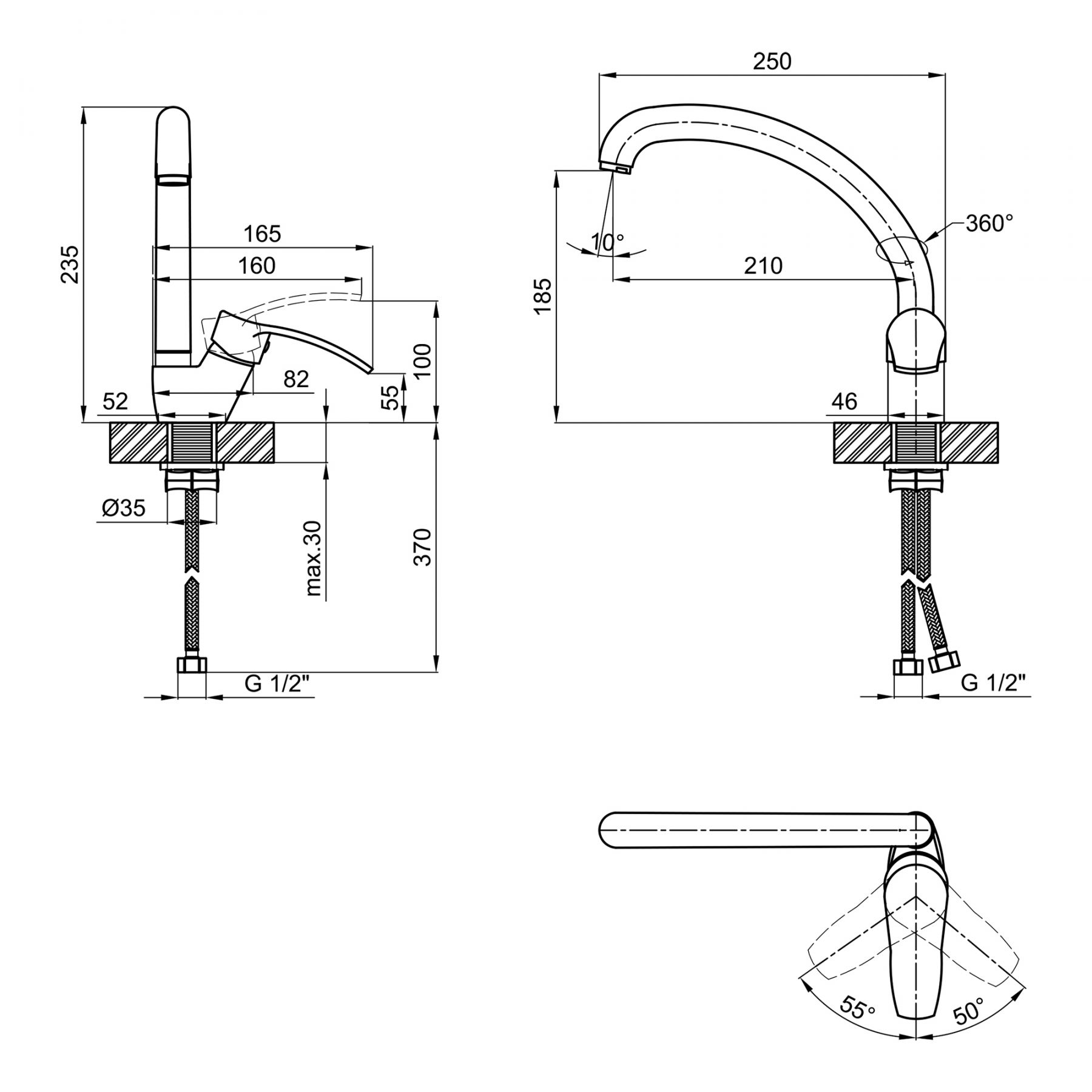 Комплектация:Смеситель. гибкий подвод. крепежные детали.