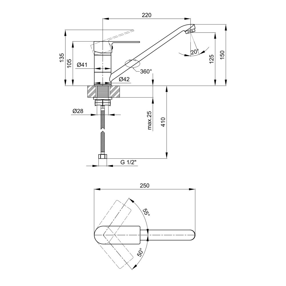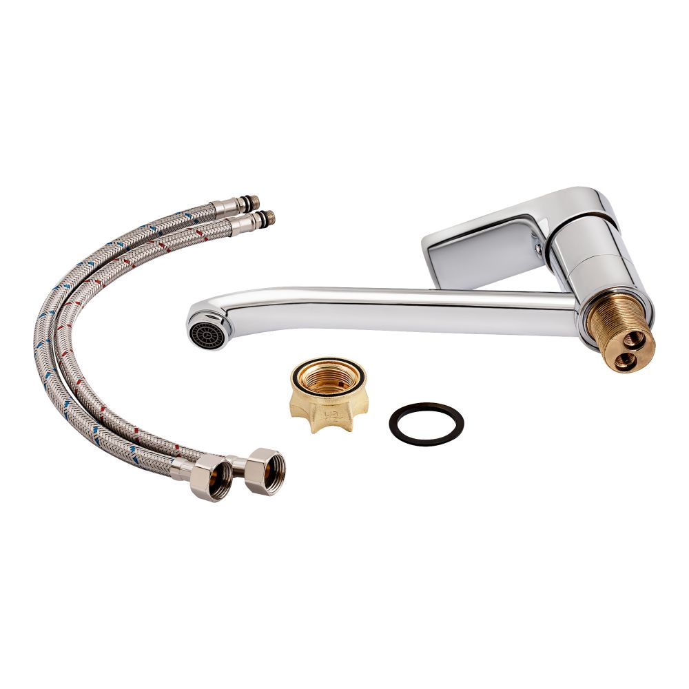Комплектация:Смеситель. гибкий подвод. крепежные детали.