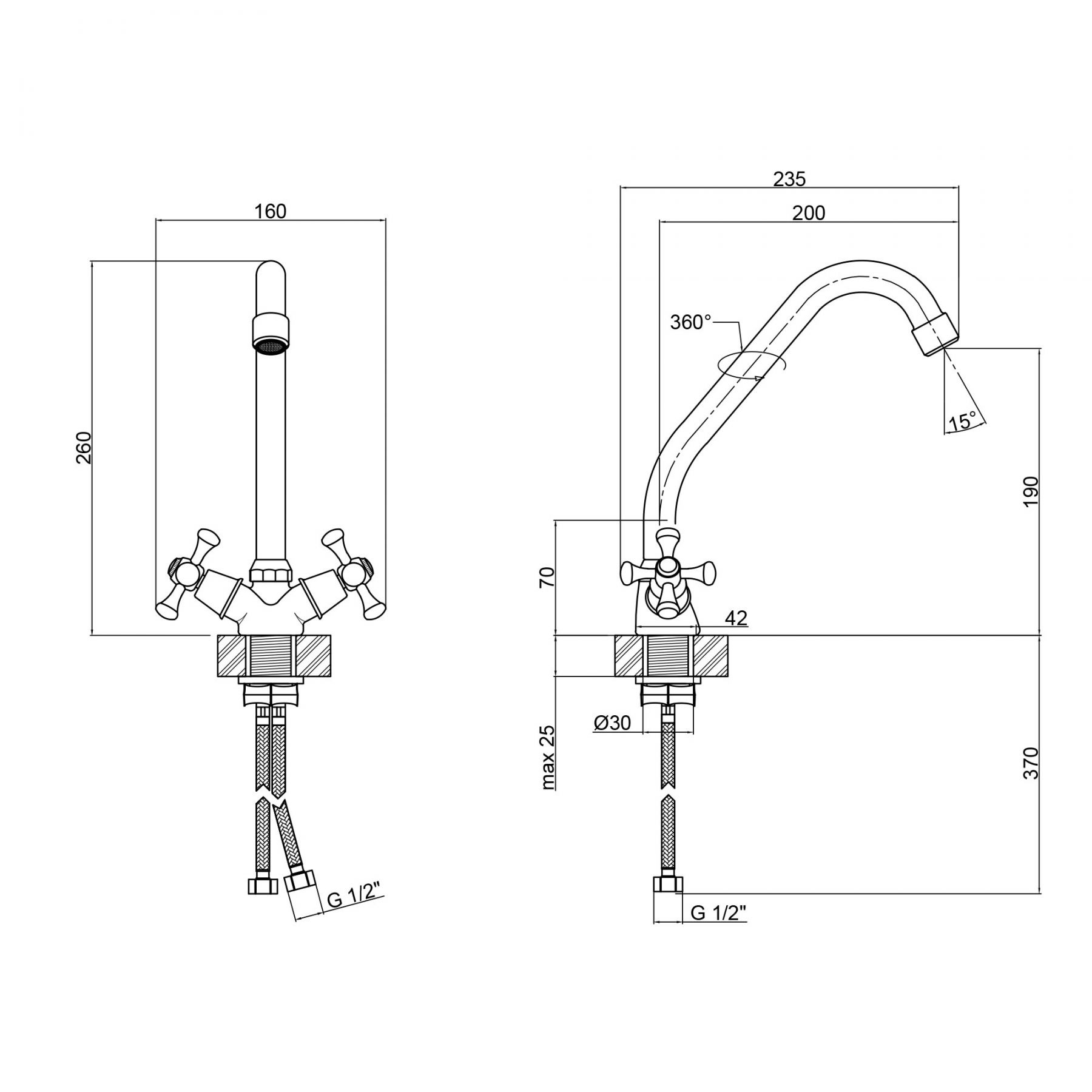 Смеситель для кухни Lidz (CRM) 75 21 272F-1 изготовлен из цинка. Благодаря глянцевому хромированному покрытию имеет оригинальный внешний вид. Выполнен в классическом стиле с вентильными ручками для переключения потока холодной и горячей воды.