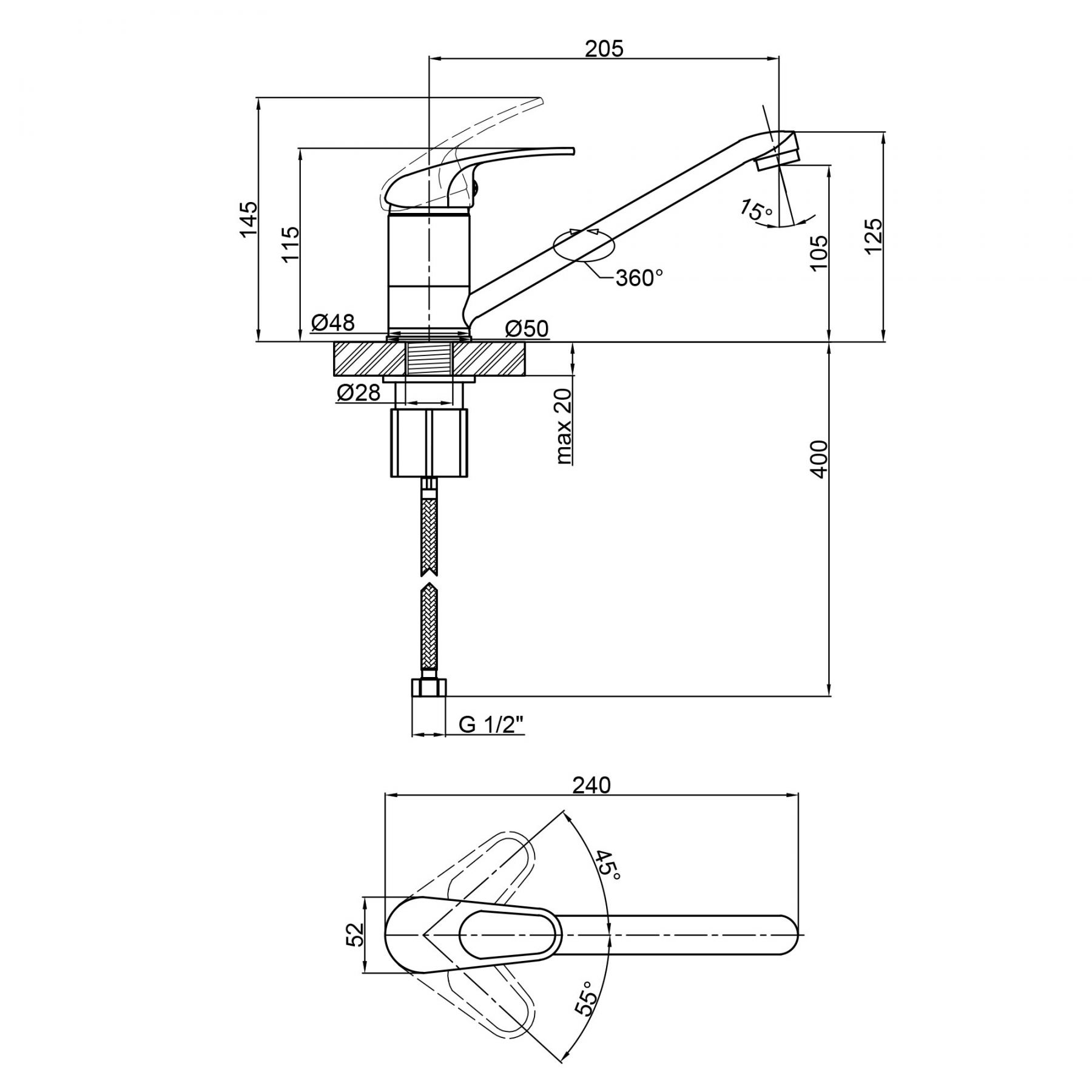 Диаметр монтажного отверстия, мм:28