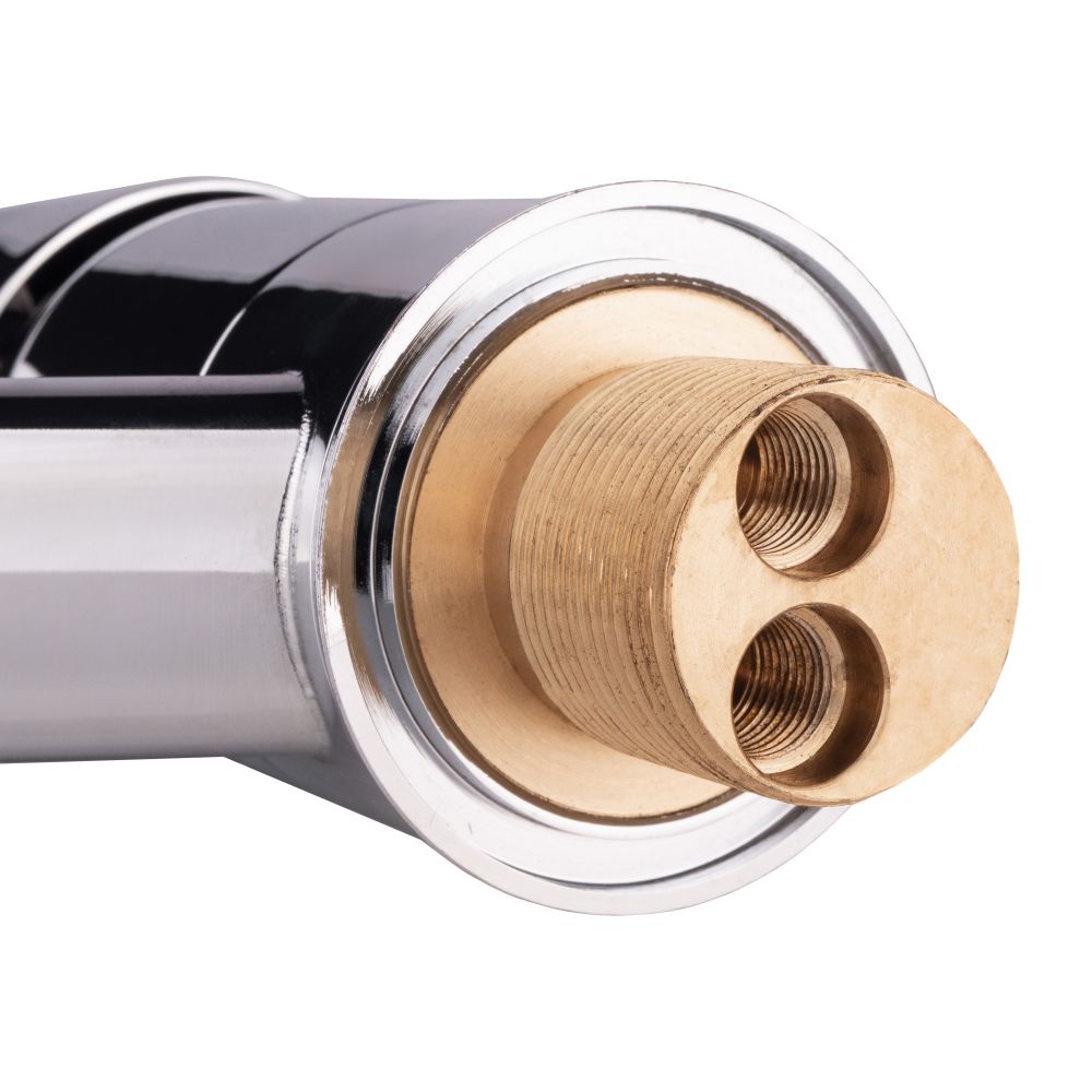 Смеситель для кухни Lidz (CRM) Cosmos 8000300 изготовлен из латуни. Благодаря глянцевой хромированной поверхности имеет оригинальный внешний вид. Выполнено в классическом стиле с удобной ручкой для переключения холодной и горячей воды. Такой смеситель не только удобен в использовании, но и идеально дополнит интерьер кухни.