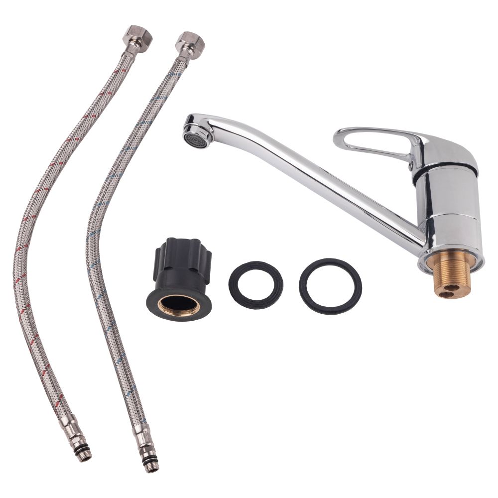 Комплектация:Смеситель. гибкий подвод. крепежные детали.
