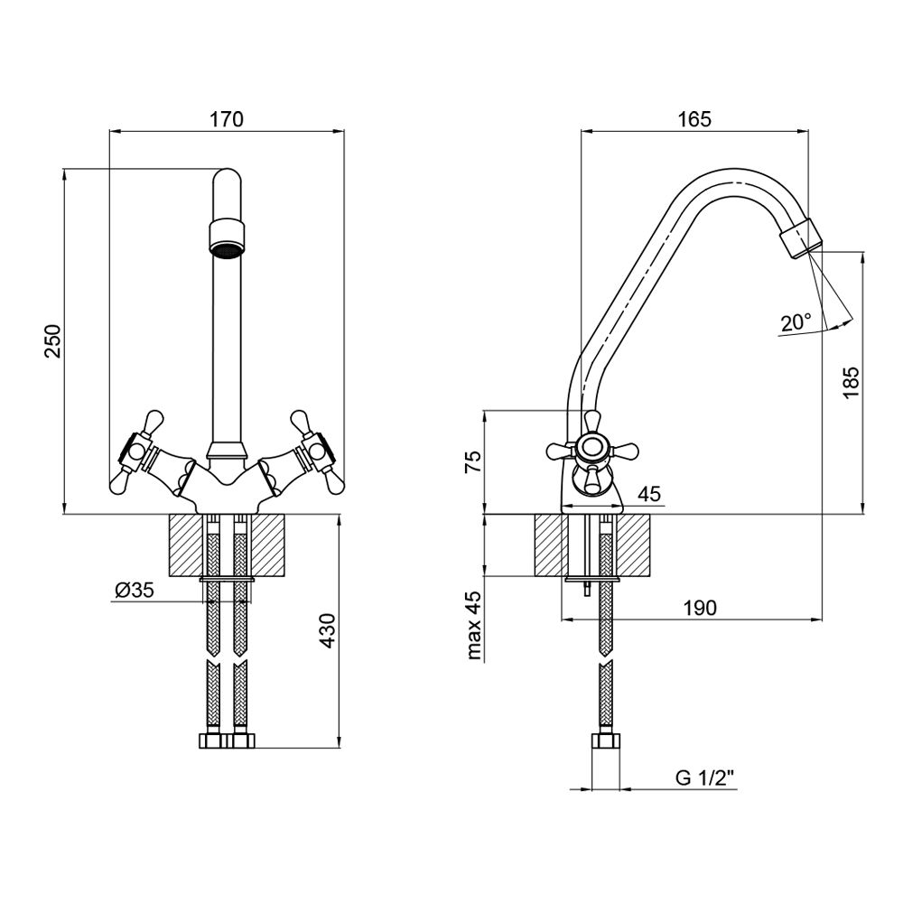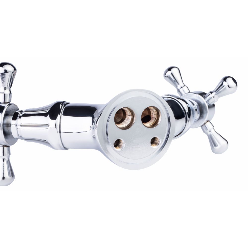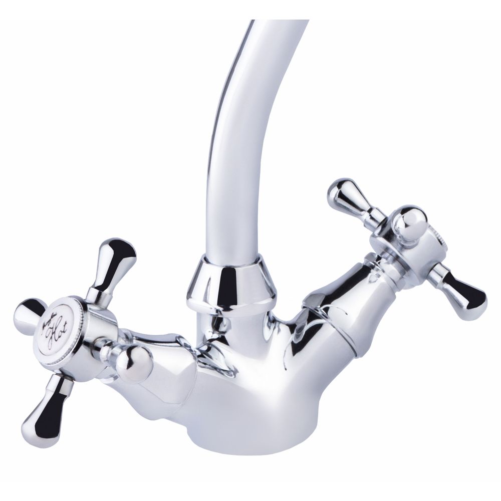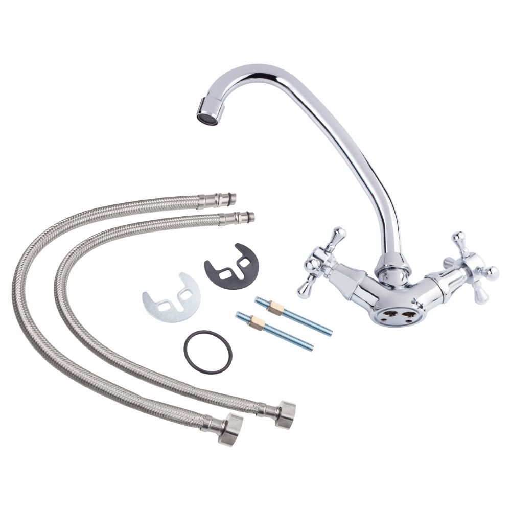 Смеситель для кухни Lidz (CRM) Mayfair 16 272-1 будет выглядеть эстетично и подойдет под любой интерьер комнаты благодаря блестящей глянцевой поверхности. Он изготовлен из высококачественной латуни. Изделие монтируется в отверстие для смесителя на столешнице или на кухонной мойке врезным способом. Напор воды и ее температура регулируются поворотом двух удобных вентилей в требуемое положение.