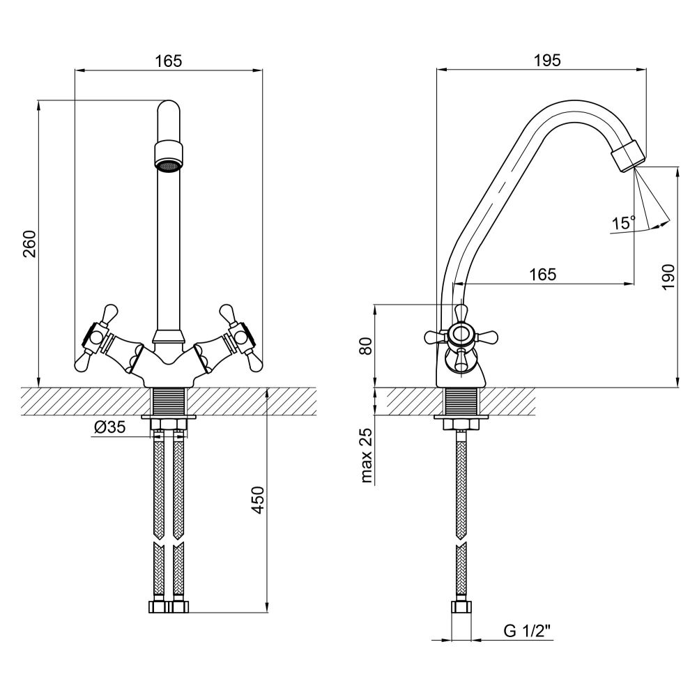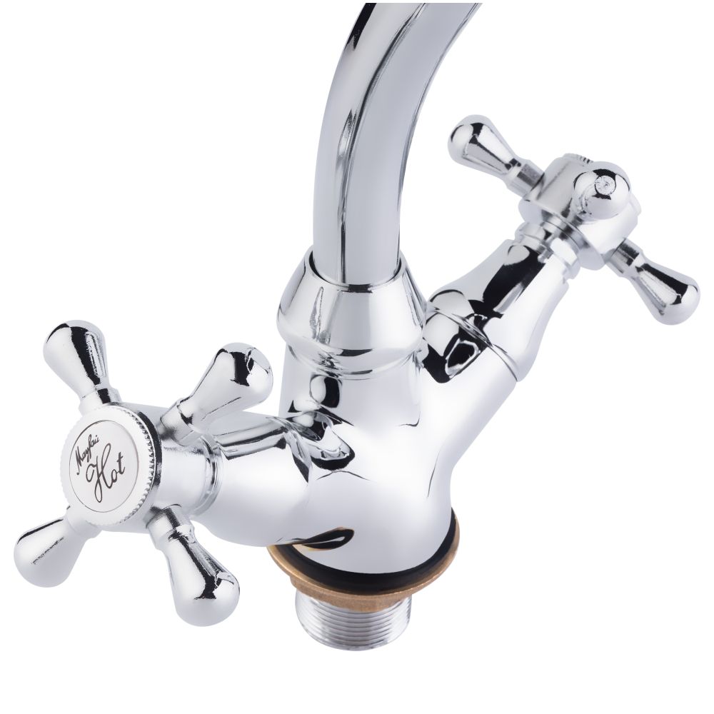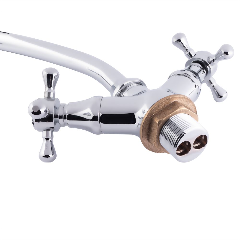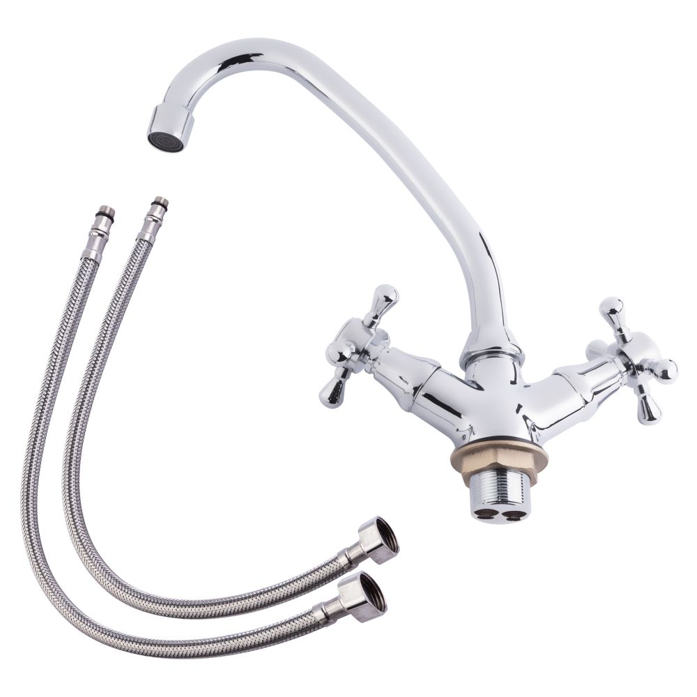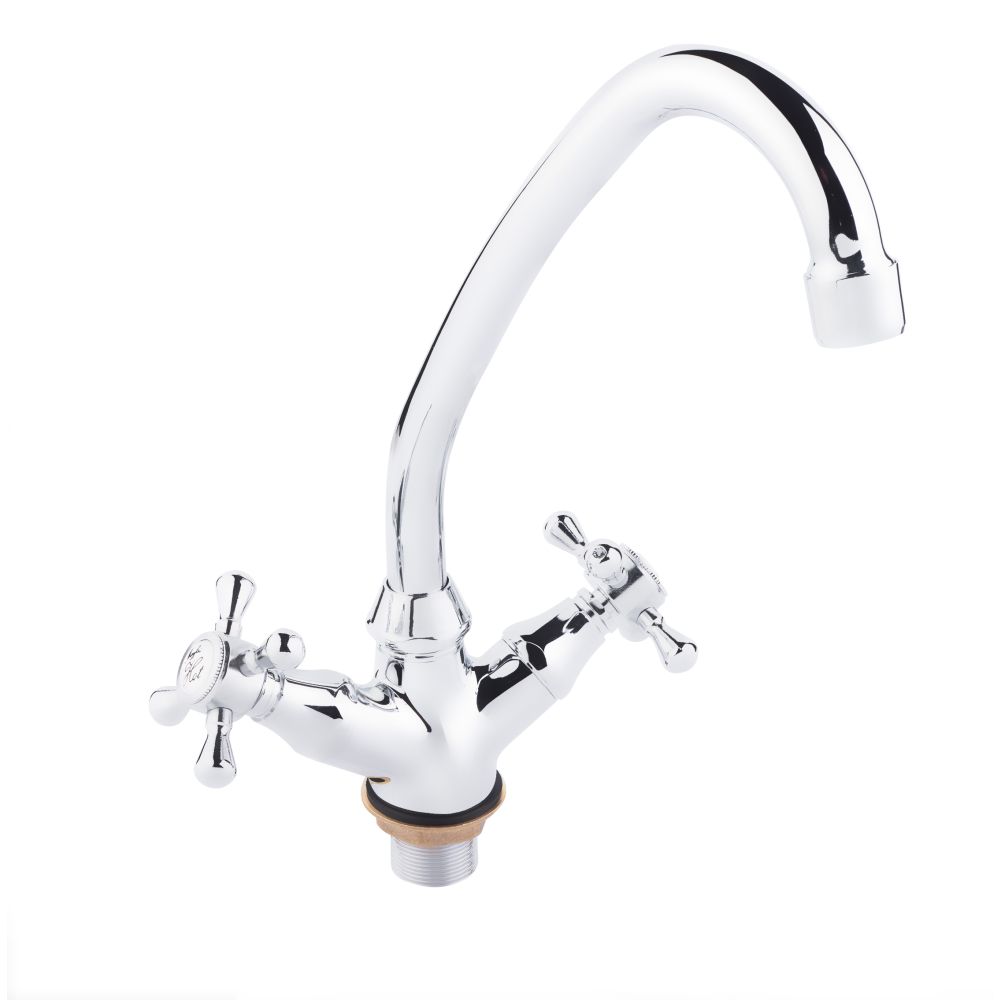 Смеситель для кухни с поворотным изливом Lidz (CRM) Mayfair 16 272F-1 выполнен из прочной латуни с глянцевой блестящей поверхностью. Он монтируется в отверстие в кухонной мойке или в столешницу врезным способом. Подача воды производится благодаря повороту вентилей в необходимое положение. Подключение воды происходит с помощью гибкого подвода, входящего в комплектацию.
