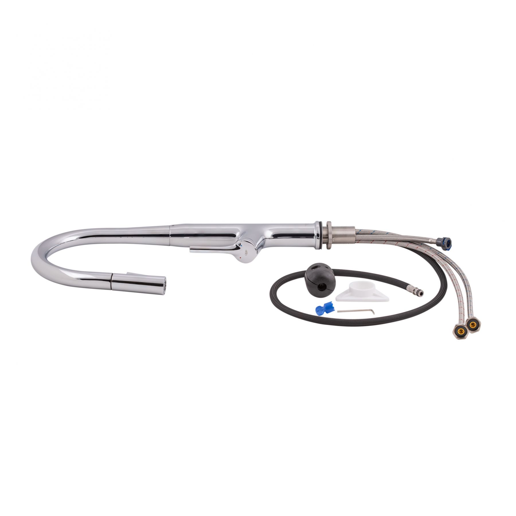 Комплектация:Смеситель. гибкий подвод. шланг для выдвижной воронки. ключ для аэратора. якорь. крепежные детали.