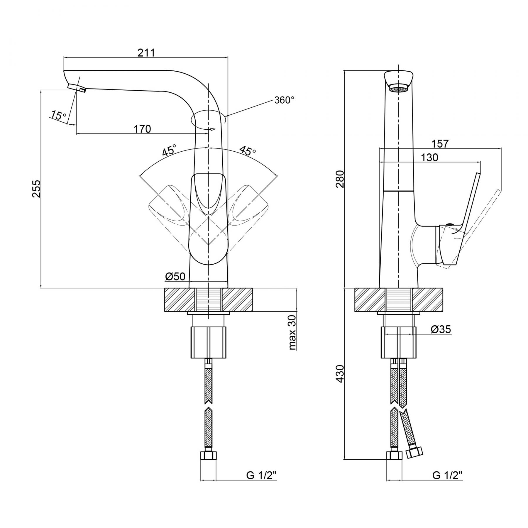 Дополнительные характеристики:Длина гибкого подвода – 430 мм.