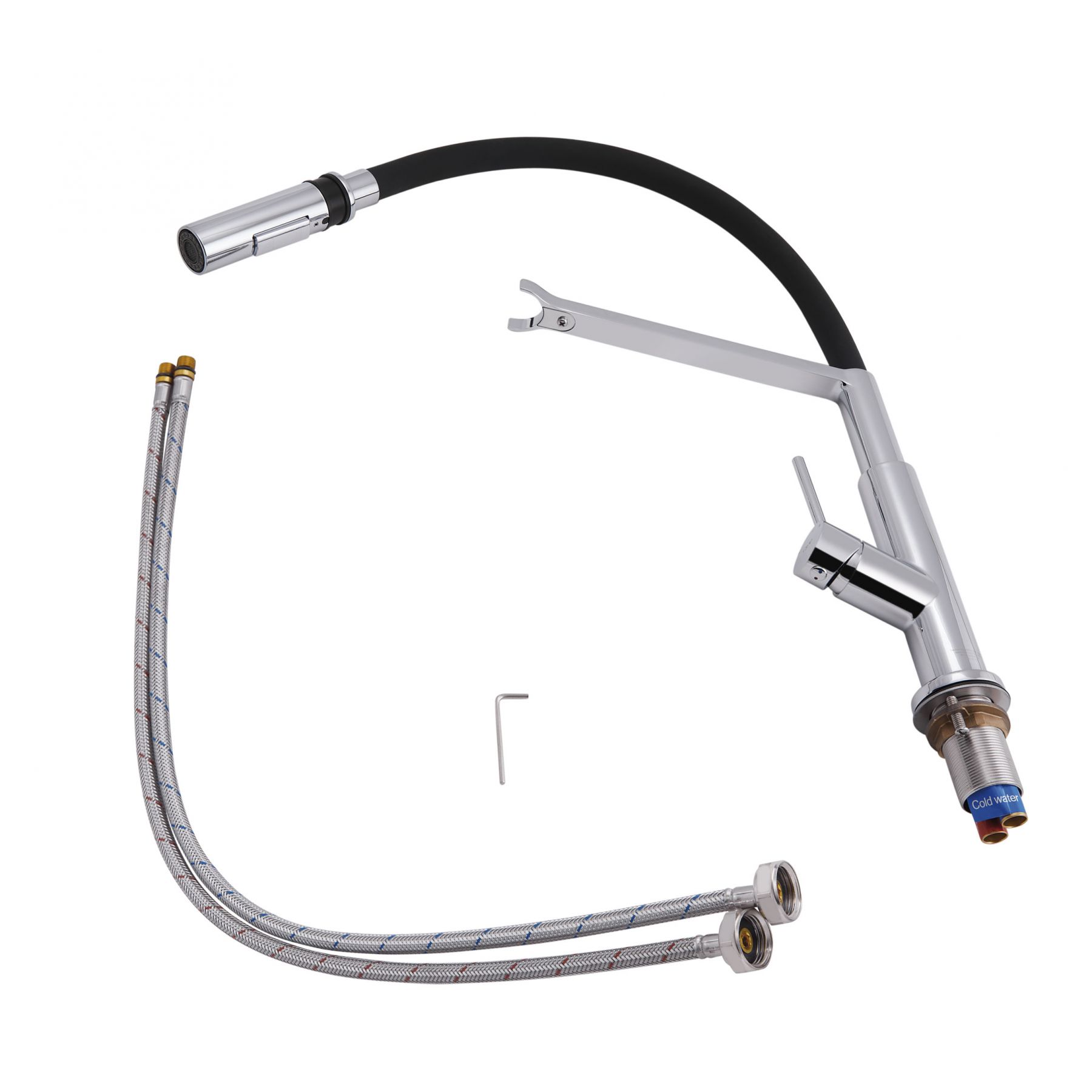 Комплектация:Смеситель, гибкий подвод, ключ для аэратора, крепежные детали.