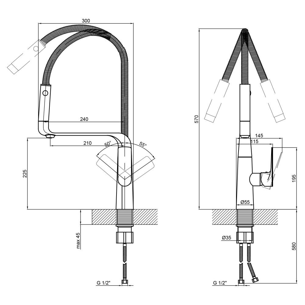Дополнительные характеристики:Длина гибкого подвода – 580 мм.