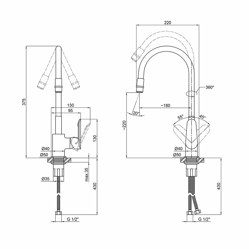 Высота излива, мм:220