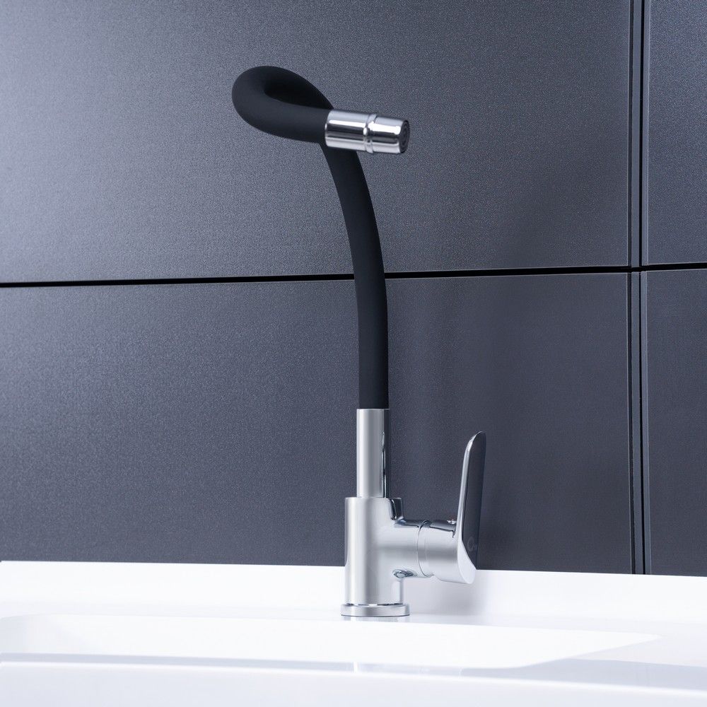 Дополнительные характеристики:Излив смесителя прорезиненный и имеет матовую фактуру. Длина гибкого подвода – 430 мм.