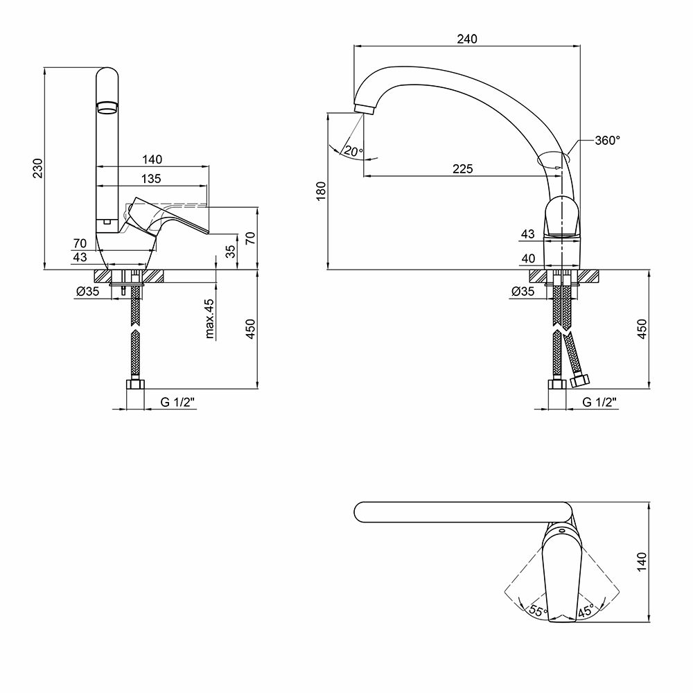 Дополнительные характеристики:Длина гибкого подвода – 450 мм.