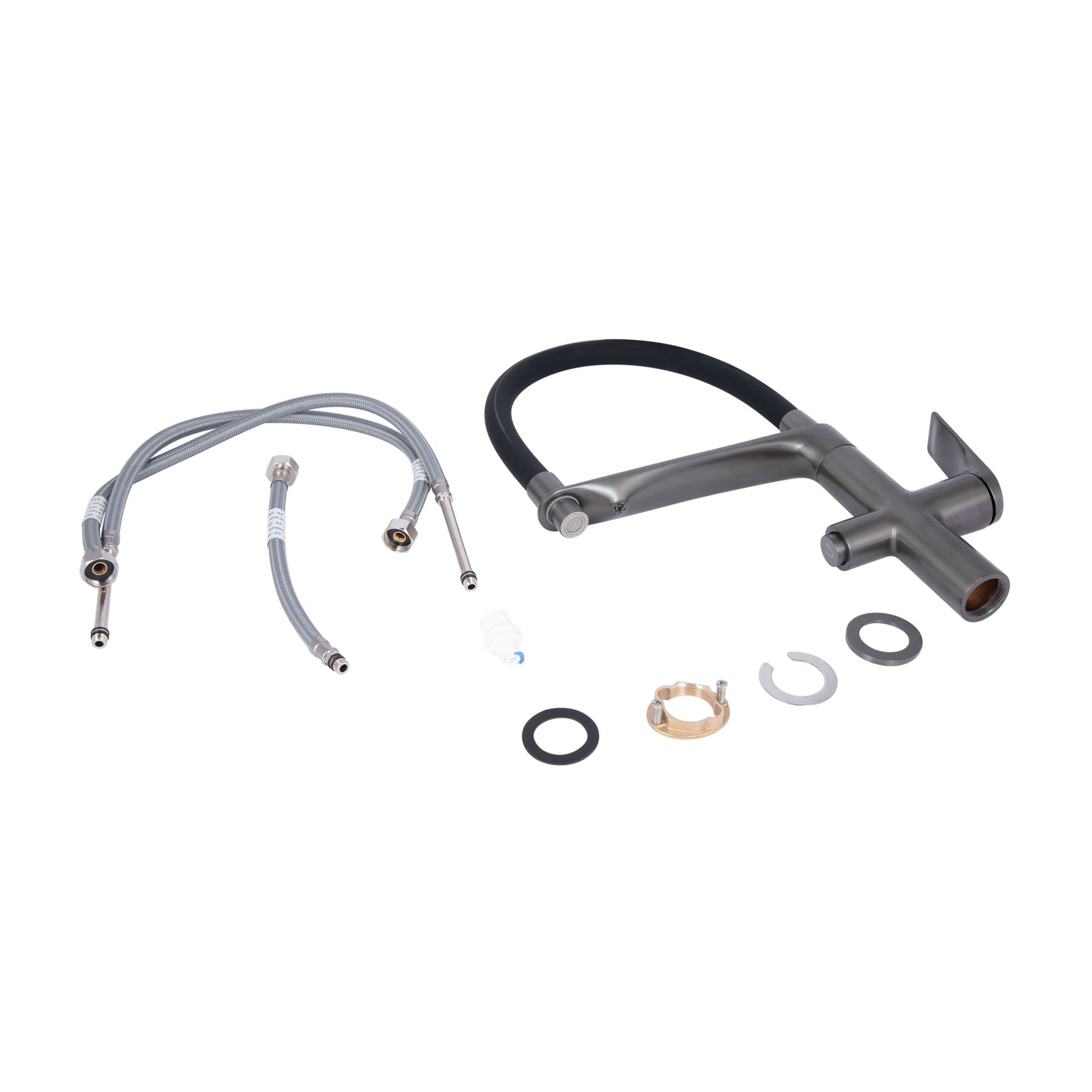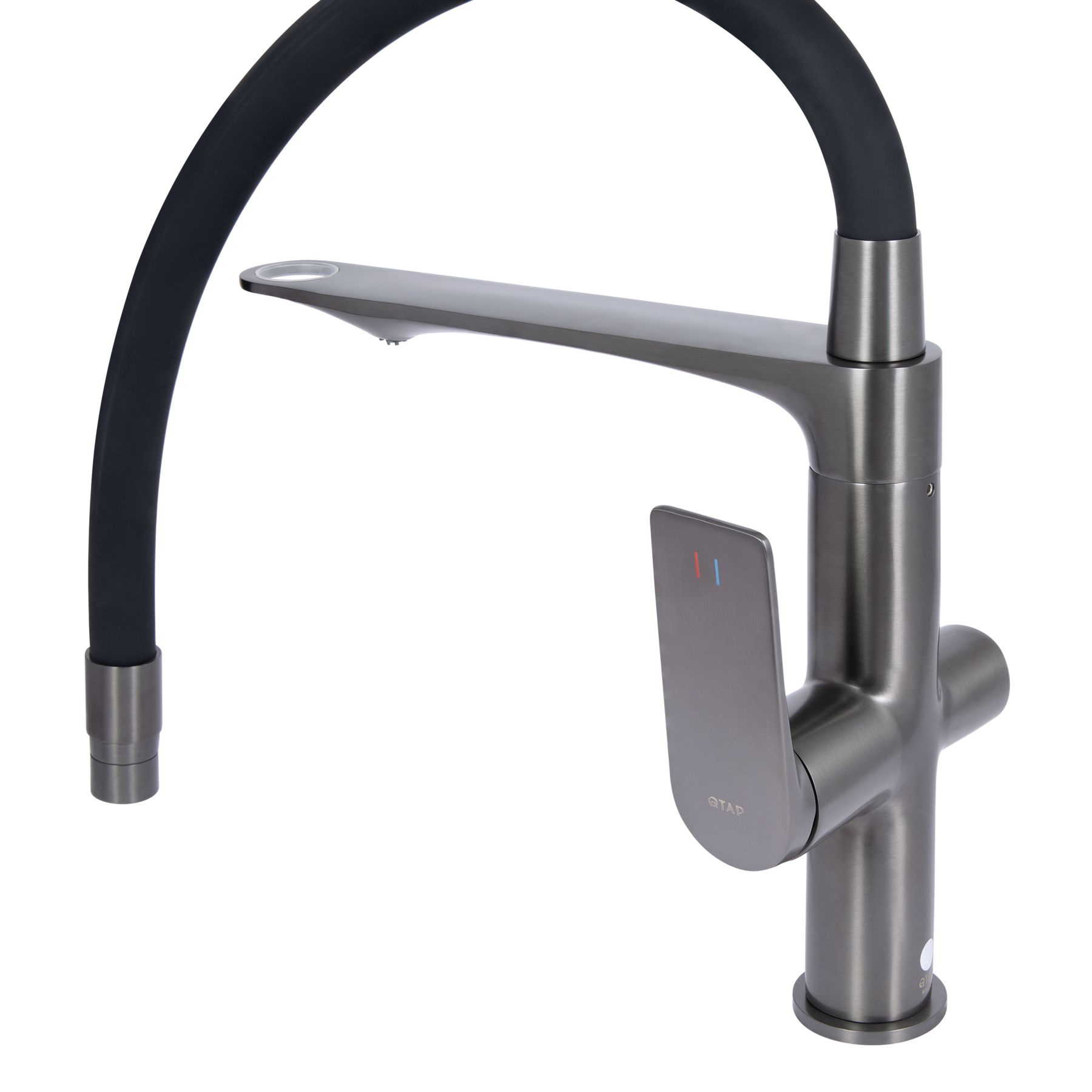 Смеситель для кухни Qtap Vlasta New с гибким изливом с подключением для питьевой воды QTVLA364GMB45649 Gunmetal Black PVD