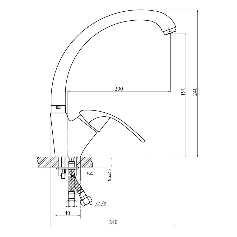 Комплектация:Смеситель. гибкий подвод. крепежные детали.