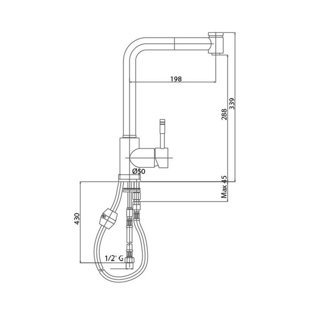Комплектация:Смеситель. гибкий подвод. шланг для выдвижной воронки. якорь. крепежные детали.