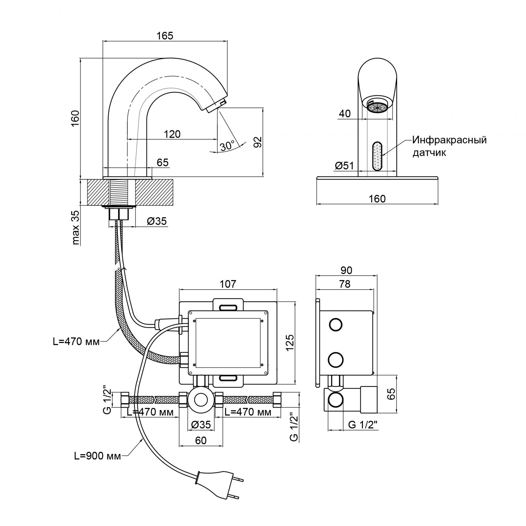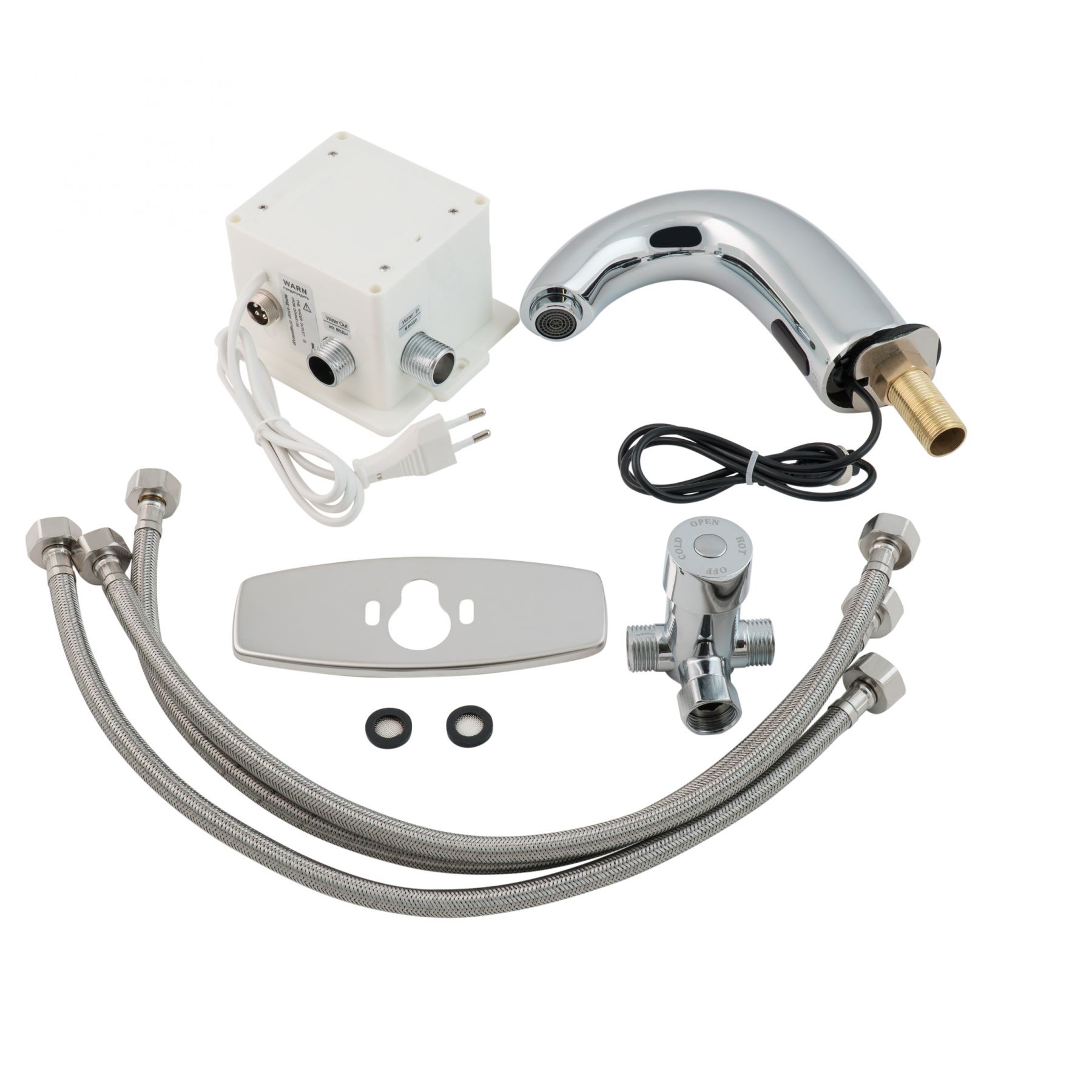 Комплектация:Смеситель. гибкий подвод. блок питания. крепежные детали.