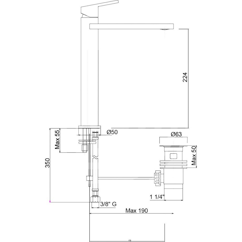 Комплектация:Смеситель. гибкий подвод. донный клапан. крепежные детали.