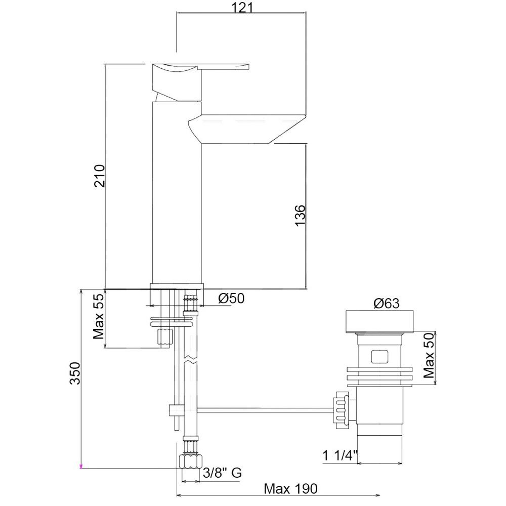 Высота излива, мм:136