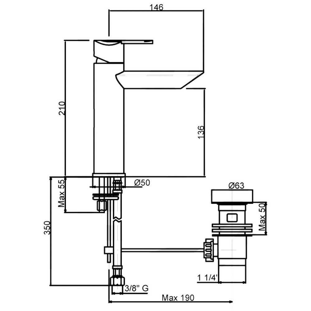 Комплектация:Смеситель. гибкий подвод. донный клапан. крепежные детали.